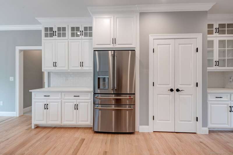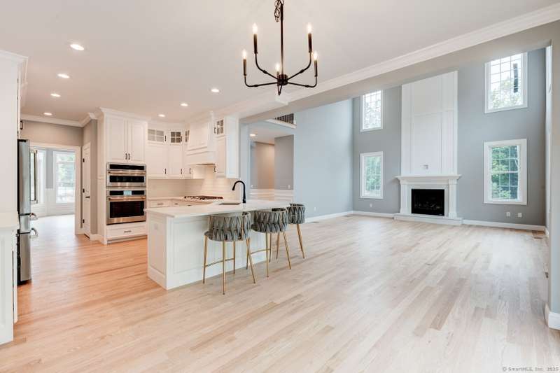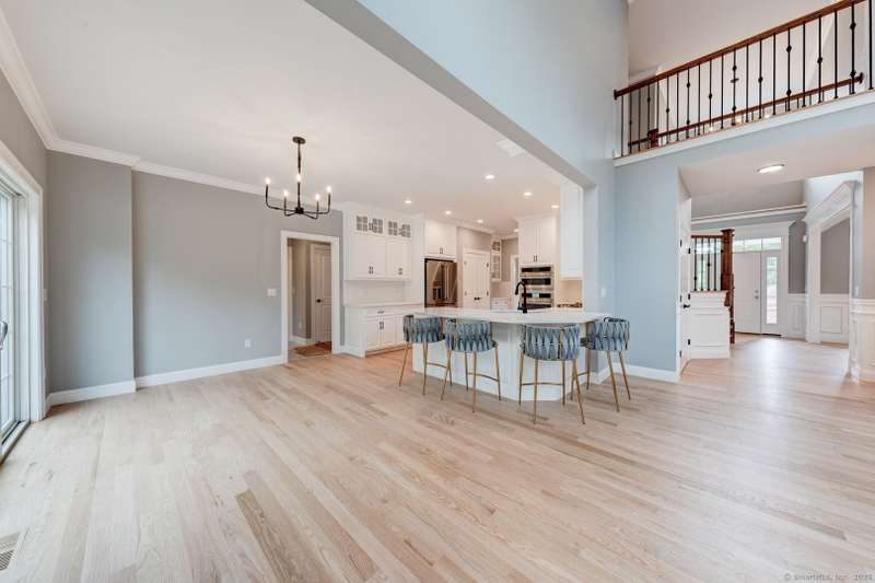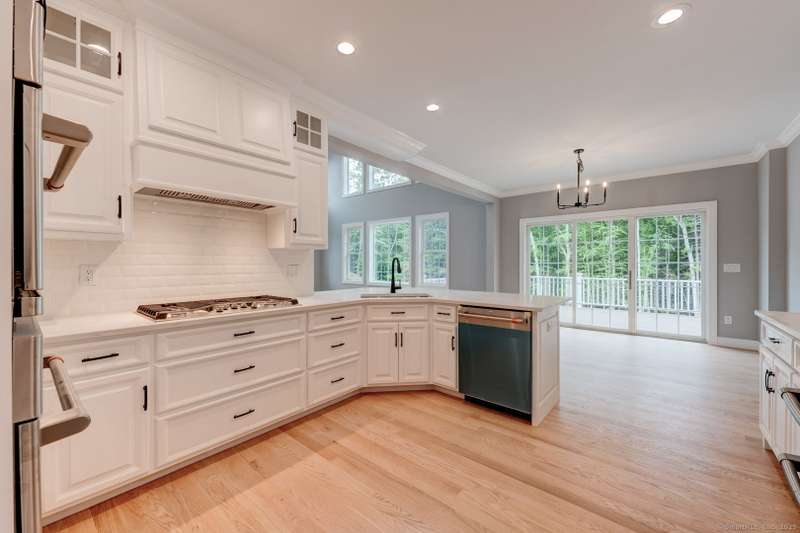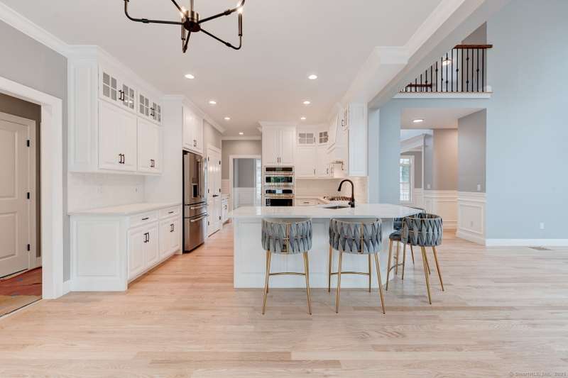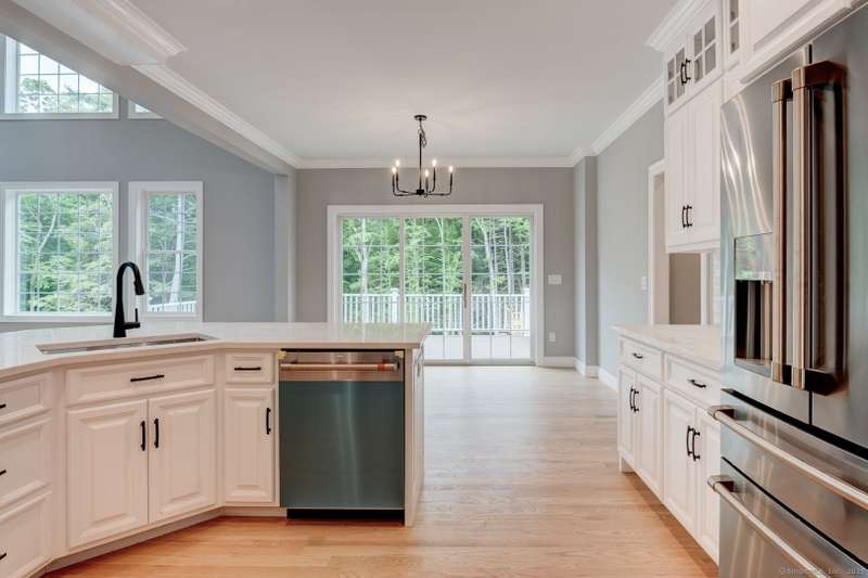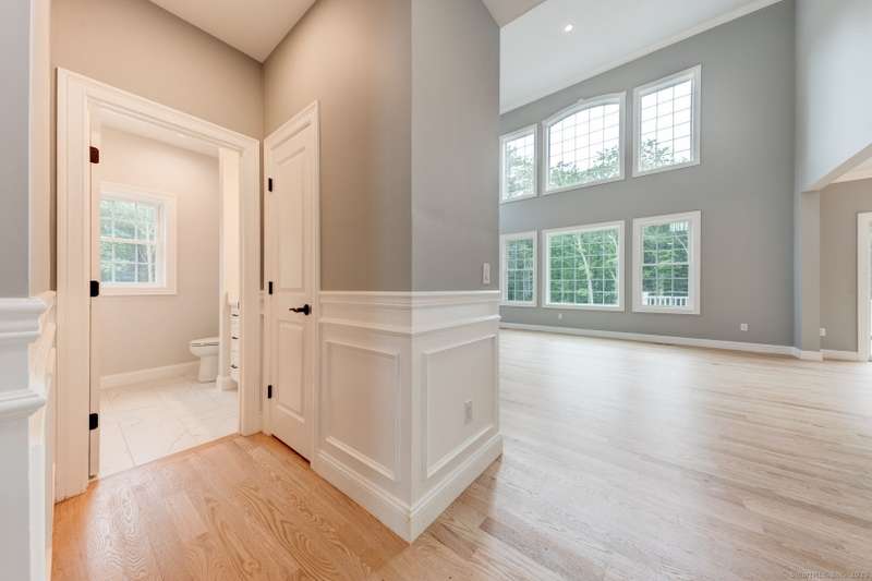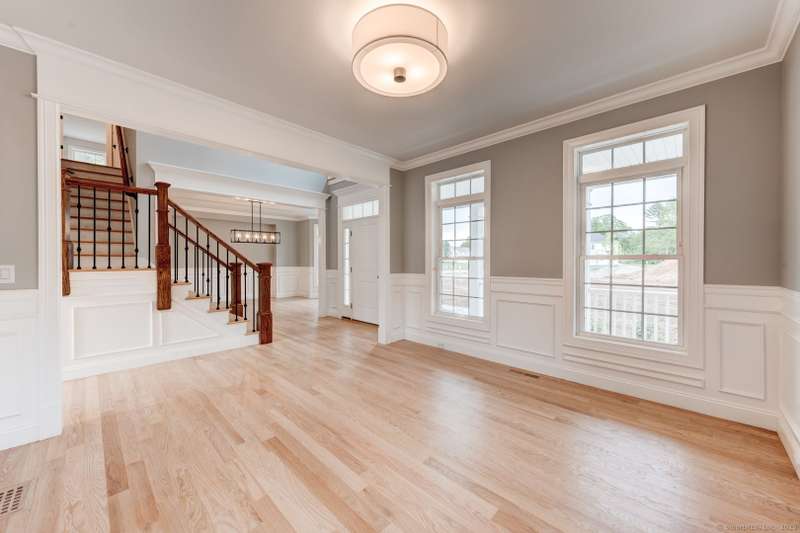 Picture perfect and fully completed New Construction Home in the highly desirable Crosby II Subdivision by Glastonbury's premier builder, Reggie Jacques! Gorgeous curb-appeal with beautiful stone veneer and elegant wrap around porch directly situated on cul-de-sac. This home offers luxury living & the perfect floorplan around a timeless design and lower level walk-out. A grand two-story foyer greets you upon entry, beginning with formal living and dining rooms positioned elegantly on either side. The dramatic family room serves as a true showstopper, w/ a soaring wall of windows and striking millwork surrounding the fireplace. The kitchen is equally captivating, features custom ceiling height cabinetry and hood, along w/ quartz countertops & blk finishes. The main level also includes a private bedroom suite, ideal for guests or the perfect office space. Upstairs, the primary suite is pure luxury w/ a serene sitting area, huge custom walk-in closet, and a spa-like bath. Three additional
