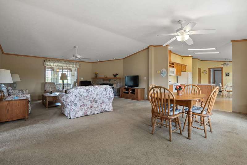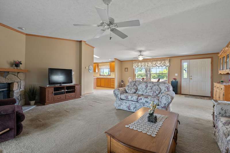 Welcome to this beautifully maintained ranch home nestled on a spacious 3/4 acre lot in the highly sought after community of Schoolcraft! If desirable to buyer, this turnkey property is being sold fully furnished - including household furnishings and garage/workshop items - making it ideal for buyers looking for a hassle free move. (If Buyer does not want items, Seller will remove. Lawn tractor is reserved but negotiable). Step inside and enjoy the inviting open floor plan featuring a large kitchen with plenty of counter space, a dining room, cozy breakfast nook, and a bright living room centered around a stunning stone wood-burning fireplace. One of the home's most beloved spaces is the 3 season porch - perfect for relaxing with a cup of coffee or entertaining - offering access to the outdoor deck. The home features 3 spacious bedrooms and 2 full bathrooms including a primary suite complete with a large walk-in closet, stand up shower and a garden tub! A separate laundry room adds to the home's functionality. There is 240 sq feet of basement space for storage and shelter as well as a large concrete crawl space. The oversized 2 car garage includes an additional workshop room - perfect for hobbies or extra storage. Enjoy the peace and privacy of the backyard, which offers ample space for outdoor fun and gatherings and has a shed for extra storage! The hot tub stays with the home, and the driveway has been freshly sealed. All appliances including the washer and dryer stay! Home has 2x6 exterior walls and drywalled not paneled like some manufactured homes. Located in a wonderful community with brand new schools and low township taxes, this is a great opportunity to own a move in ready home with so much to offer.