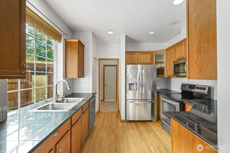This lovely traditional home is located just blocks from North Hill Elementary. Home boasts gated private driveway, that lends to a tranquil fully fenced yard w/ 2 garage & carport. Home has engineered hardwoods/hardwoods through out, 3 bedrooms plus office space/4th bedroom on upper level. Primary suite with 5 piece bath plus walk-in closet. SS appliances, picture perfect window above kitchen sink that overlooks flat backyard with patio and outdoor shed. Perfect for entertaining, or for your furry friends. Garage space has engineered flooring, & could be used for rec room, office, gym or garage. This home was originally built for a builder's primary residence-it has the workmanship that you would expect!