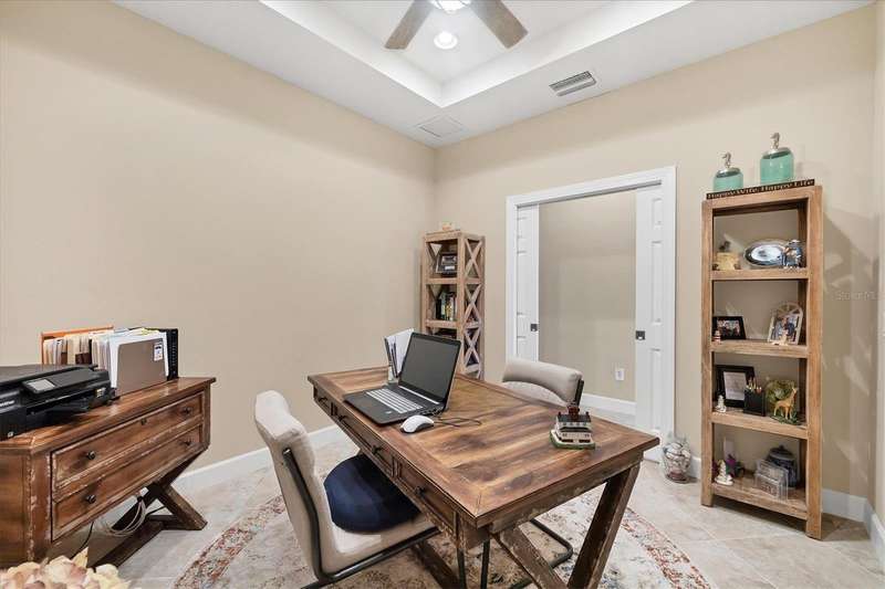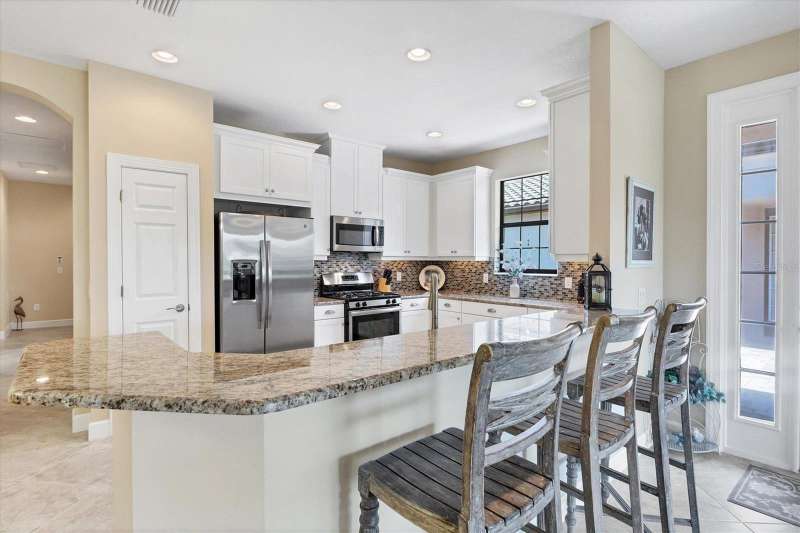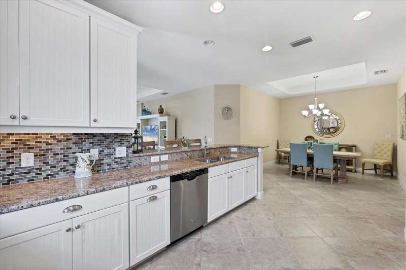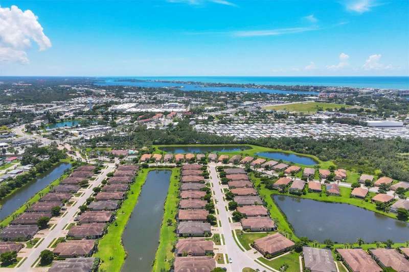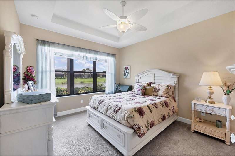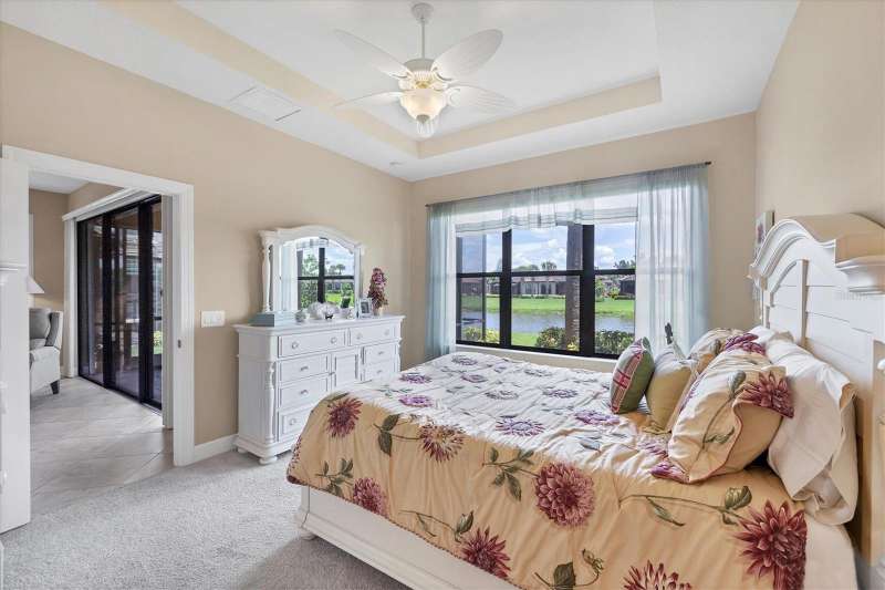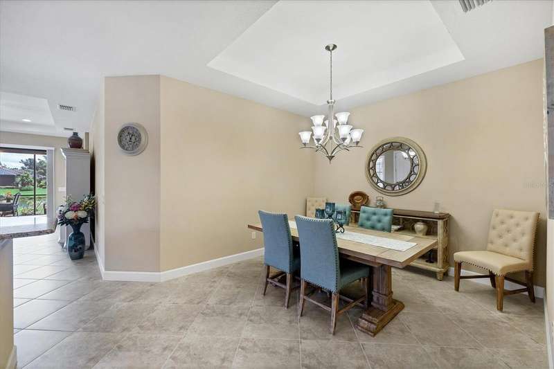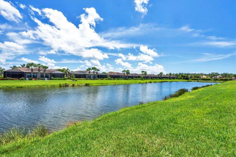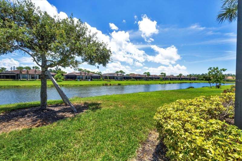 Situated in the highly desirable Esplanade by Siesta Key community, this maintenance-free villa is just minutes away from downtown Sarasota and the pristine, crystal-sand beaches of Siesta Key. Enjoy breathtaking water views from multiple vantage points within the villa. The living room opens up to an expansive lake view that creates a serene atmosphere. The kitchen is equipped with generous granite counters, making it both functional and stylish. This villa offers two en suite bedrooms, a third bedroom, and an office or den that can also serve as an additional guest room. The primary bedroom boasts impressive lake views, an en suite bathroom with double sinks, a spacious shower, and a large walk-in closet. The den provides a quiet, inviting space for work or relaxation. Step onto the extended lanai and experience the beauty of lush foliage and shimmering lake views. Whether enjoying a morning cup of coffee or a sunset dinner, the lanai offers the perfect setting for peaceful outdoor living. The villa has been "lightly lived-in," as the owners only reside here for short periods each year. Upgrades include Plantation shutters throughout, ceiling fans, granite countertops in the kitchen and bathrooms, custom cabinets in the laundry room, hurricane shutters, lanai pre-wired and plumbed for a summer kitchen, epoxy flooring in the garage, gutters, and a hurricane-resistant garage door. Esplanade by Siesta Key offers a variety of first-class amenities, including an elegant Amenity Center, pool and spa, a fully equipped fitness room, pickle ball court, Har-Tru tennis court, and a dog park. Residents can participate in a full menu of social activities and enjoy the benefits of no CDD fees and no hurricane concerns. This is a rare opportunity to experience Sarasota living at its finest. Furniture is optional.