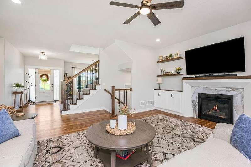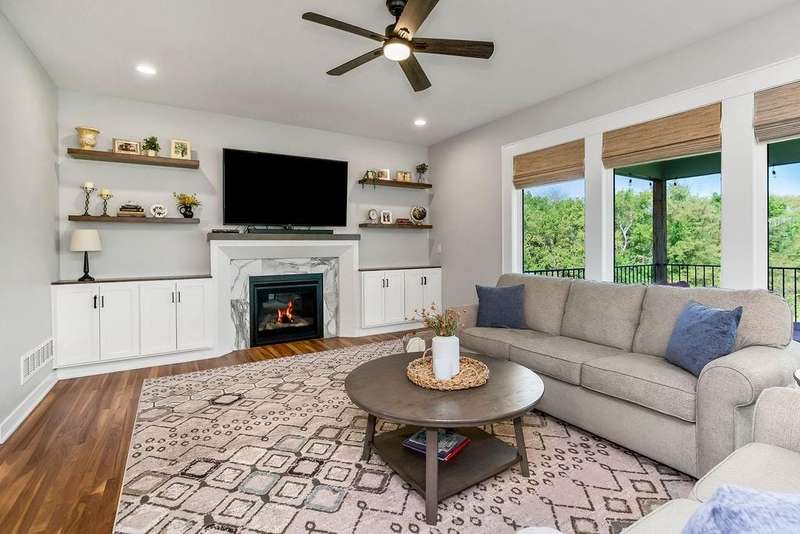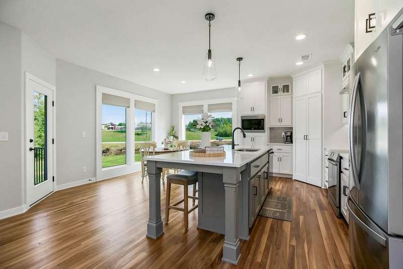 Skip the construction delays and move right into this gorgeous, move-in ready home in The Retreat at Hook Farms! Enjoy beautiful sunsets on your front porch, dinner on your covered back deck, and all the perks of a thoughtfully designed 4-bed layout in one of KCs most desirable suburbs. Modern meets traditional design with accent walls, custom woven roman shades throughout main floor and stunning built-ins cabinetry below floating shelves in great room. Step into luxury in the European style walk-in shower room with soaker tub. Close proximity to Hawthorn Hill Elementary School and many of the great amenities that Lee's Summit has to offer! The Retreat at Hook Farms has walking trails, access to community's zero entry pool and community gardens coming soon!