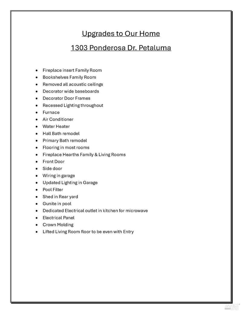 Beautiful single-family home is located in the charming city of Petaluma. The 1,785 square-foot residence offers a spacious and comfortable floor plan, featuring 4 bedrooms & 2 updated bathrooms. Step inside to discover the stunning 100k+ in renovations that have transformed this home. The kitchen boasts modern updates and granite counters, perfect for culinary adventures and gatherings. Cozy evenings await in the formal living room & inviting family room, both featuring a warm and elegant fireplaces, providing the perfect setting for relaxation and entertainment. The home is equipped with central air conditioning, central heating, ensuring year-round comfort for you and your family. Outdoor enthusiasts will appreciate the private patio and pool ideal for enjoying serene moments or hosting summer barbecues. The yard offers a peaceful escape, perfect for gardening or simply soaking up the California sun. This home truly embodies comfort and style in every corner. NEW roof and section one pest clearance coming. Sellers welcome all buyers to come see this home! Do not miss the opportunity to make 1303 Ponderosa Dr your new sanctuary.