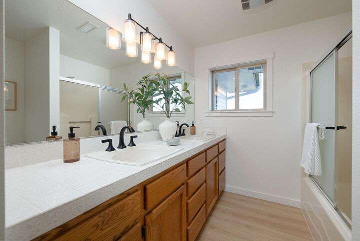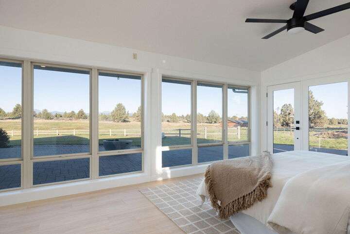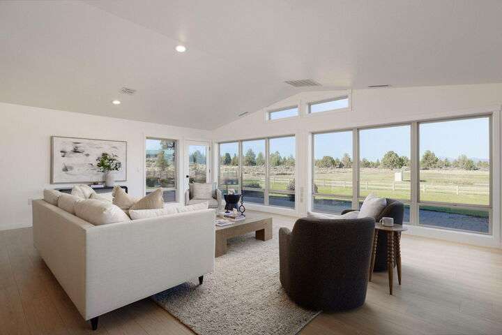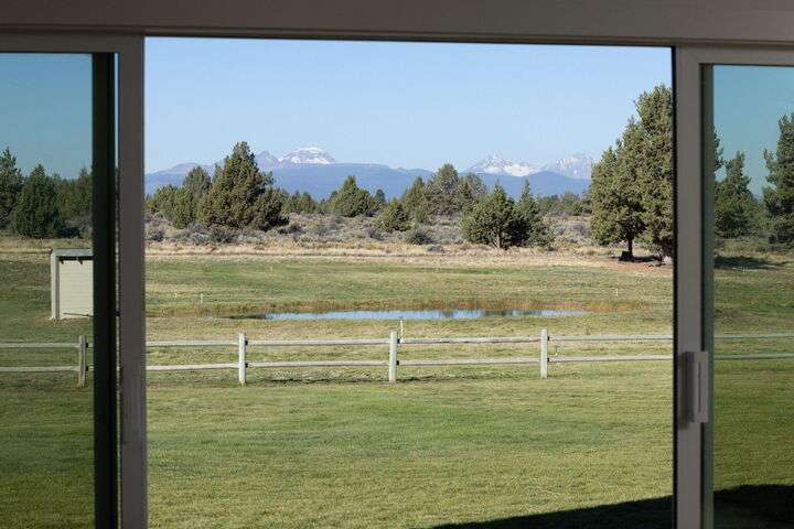 Wow! This one-of-a-kind 5.3-acre property offers stunning Cascade Mountain views and a brand-new, permitted 727sq. ft. addition—ideal as a guest space, studio, or hangout room. Fresh paint, new floors, and updated doors throughout. With 3 bedrooms, 3 baths, and a bonus suite, there's room for everyone. The main suite features a walk-in shower, spacious closet, and built-ins. Cook and entertain in the generous kitchen while soaking in the views, then unwind on the large patio overlooking the irrigated pasture with underground sprinklers. A new furnace, heat pump, and Generac 25kW backup generator ensure year-round comfort. Two 16x20 sheds, a fenced garden, and plenty of space for RVs and toys. Just 8 miles from downtown Bend—privacy, comfort, and mountain magic all in one. Access via Gosney Road for asphalt all the way to the house.