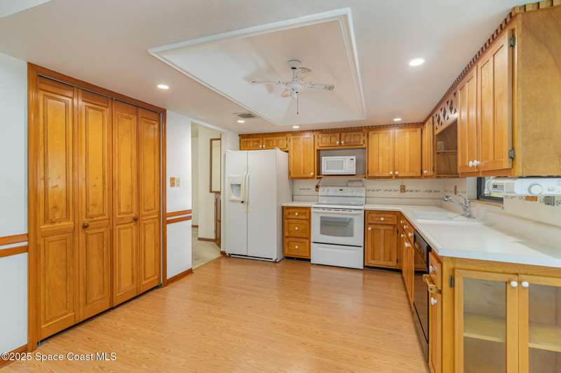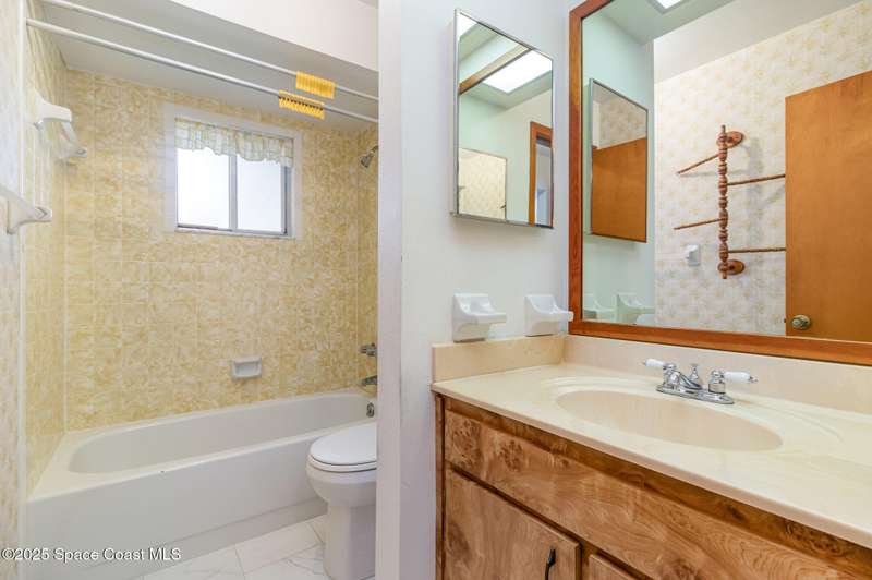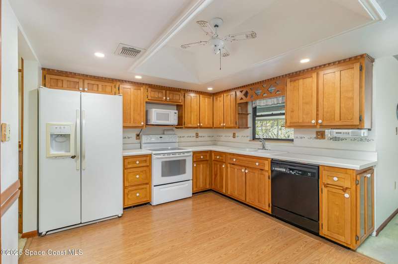 Welcome to this fabulously vintage MERRITT ISLAND home ideally located in the heart of Florida's SPACE COAST with great proximity to the River, Port Canaveral, Kennedy Space Center and Orlando attractions! This charming residence offers 3 Bedrooms, 2 Baths and multiple living areas including: formal living & family room, dining area and a cozy breakfast nook! The spacious kitchen provides plenty of potential to personalize and make it your own. Enjoy peaceful moments on the screened patio overlooking a lovely pond and blissful backyard the perfect spot to watch rocket launches from home! Updates include a new roof (2024) and storm shutters. With a little TLC and lots of love, this gem can truly shine! The East Coast Beaches, Boating and Water Expeditions are calling your name!
