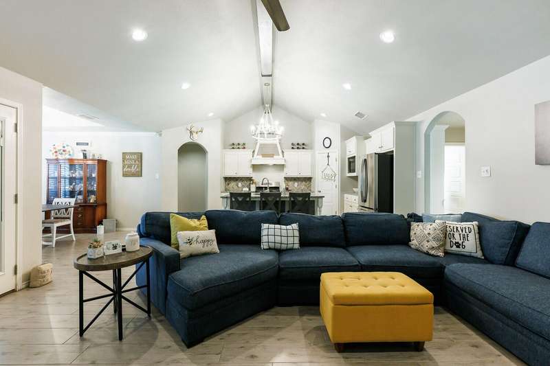 Welcome to this Beautifully Maintained 4 Bedroom, 3 Bath Home in an Ideal Neighborhood, Within Walking Distance to Laura Bush Middle School. The Stunning Entryway Features a Brick Barrel Ceiling. Open Concept Living Area is Warm and Inviting with Vaulted Ceilings, Striking Wood Beam, and Cozy Gas Fireplace. The Kitchen is Truly a Standout with Large Island, Gas Cooktop, Granite Countertops, Spacious Pantry, and Seamless Flow to Living and Dining...Ideal for Entertaining! This Thoughtful Floorplan Offers an Isolated Primary Bedroom plus Ensuite Bath Featuring Double Vanities, Soaker Tub, HUGE Walk-In Closet that Convineltly Connects to the Laundry Room. The 4th Bedroom is Tucked Away with its Own Full Bathroom, Perfect for a Mother-In-Law Suite or Private Guest Space. Easy to Maintain Wood-Like Tile Throughout Home, Adding Style and Durability. With SPEC as Utility Provider, This Home TRULY Checks all the Boxes! Don't Miss Your Chance at this Great Price!