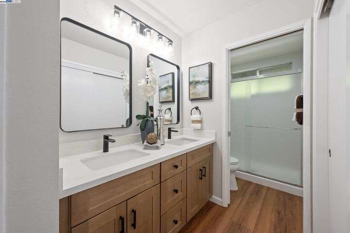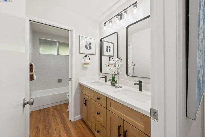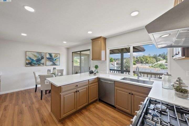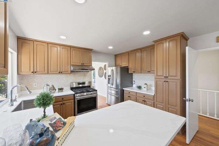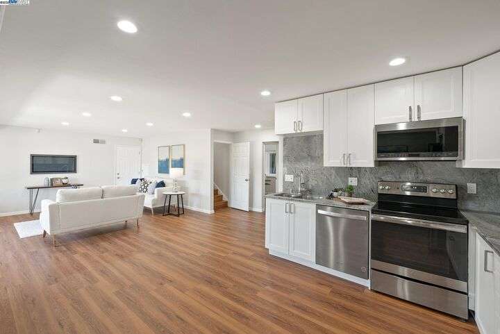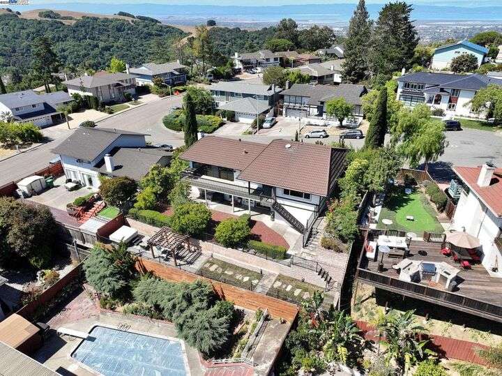 Immaculately remodeled 5-bed, 3-bath Hayward Hills home perfect for modern families or savvy investors! The upper level features 3 bedrooms, 2 baths, and a bright, open-concept layout, while the lower level includes 2 bedrooms, 1 bath, a spacious family room, and a second full kitchen—ideal for extended family, guests, or rental income. Enjoy designer kitchens and baths, elegant flooring, and updated lighting throughout. Relax or entertain in the serene backyard with a private jacuzzi. Located on a quiet cul-de-sac near top schools, parks, hiking trails, and convenient freeway access. Turnkey and move-in ready, this rare property combines lifestyle, flexibility, and strong investment potential in the coveted Hayward Hills!