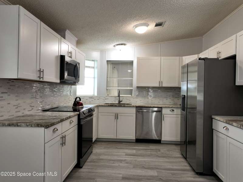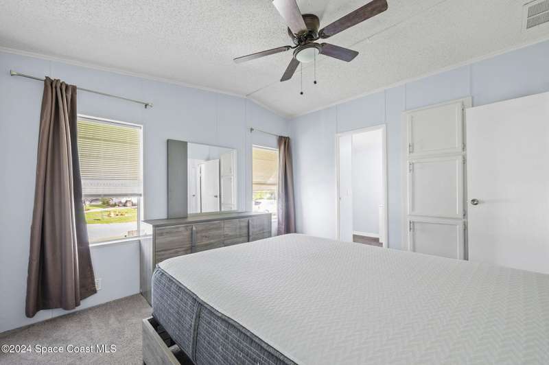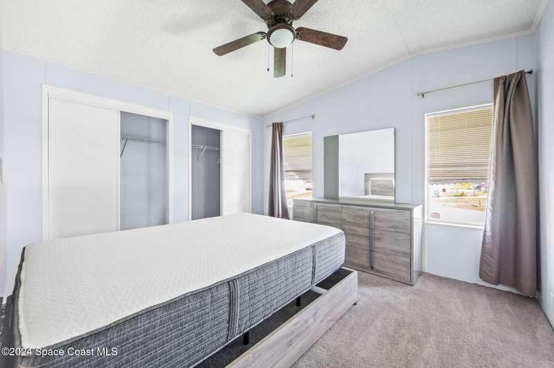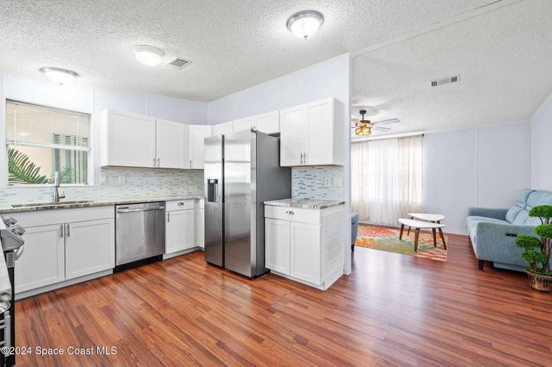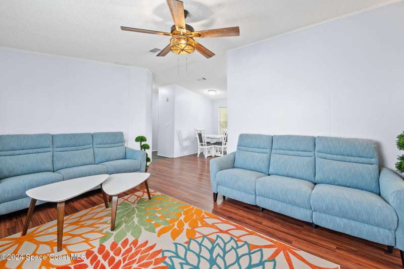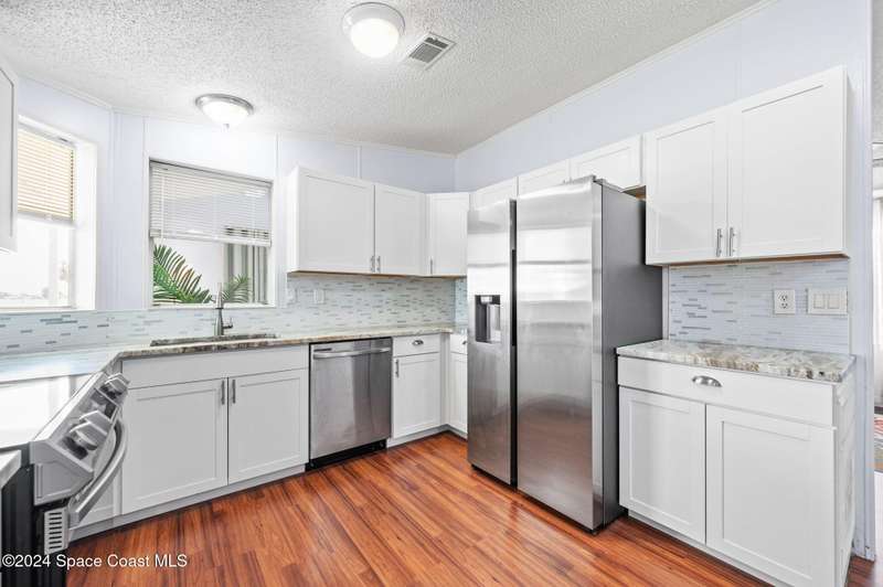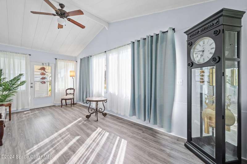 GOLF COURSE VIEW!! That's what this home is about, as well as Remodeling upgrades. BRAND NEW FLOORING gives this beautiful home a bright and clean makeover! 2023 Roof, AC and duct work, New Appliances, Granite countertops, bathroom vanities, 6K Bath Fitter shower, LVP flooring and New carpet in bedrooms, painted inside and out. 40 GALLON WATER HEATER JUST INSTALLED! This beautiful home is a must see! Enjoy cruising in a golf cart with easy access to grocery stores, restaurants, library, Clubhouse, fitness gym and other services. This property also comes with the private Barefoot Bay Atlantic Beach access and gated access to a fishing dock on the Indian River as part of the community membership. Golf Course, 3 community pools, shuffleboard, mini golf, live entertainment and about 90 clubs and events you can join at the beautiful Clubhouse.