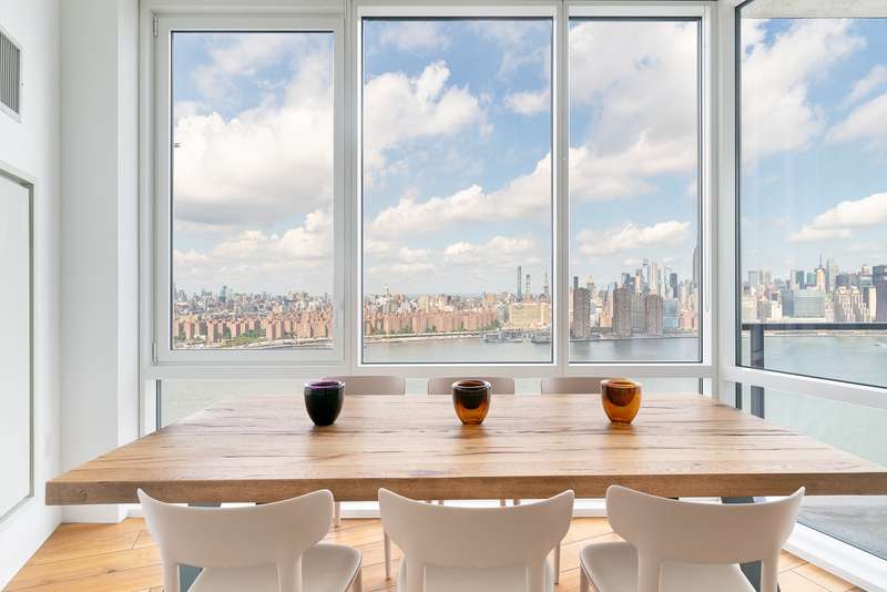 This expansive 3-bedroom, 2.5-bathroom condominium residence soaks in expansive East River views from every room, including west-facing floor-to-ceiling windows in the living/dining room overlooking Manhattan and beyond. From its perch on the 34th floor of the decadent 21 India Street, residents will enjoy sweeping views of river, skyline, and sky all year round via western and northern exposures.