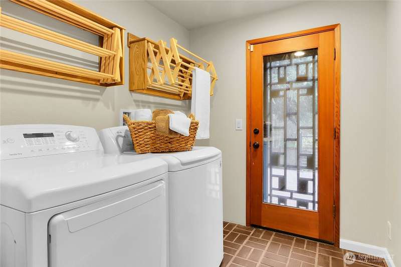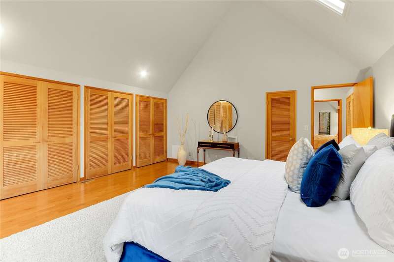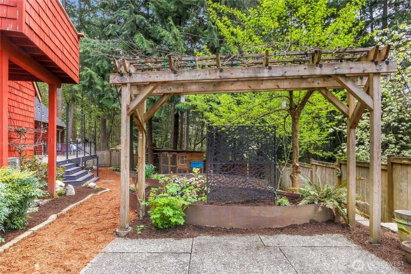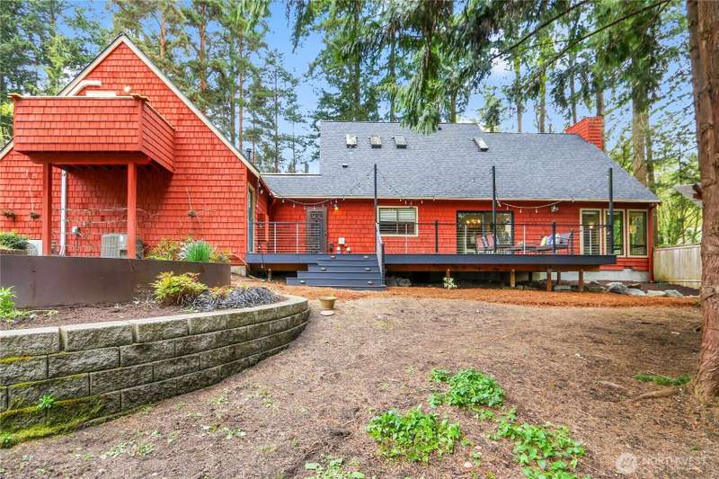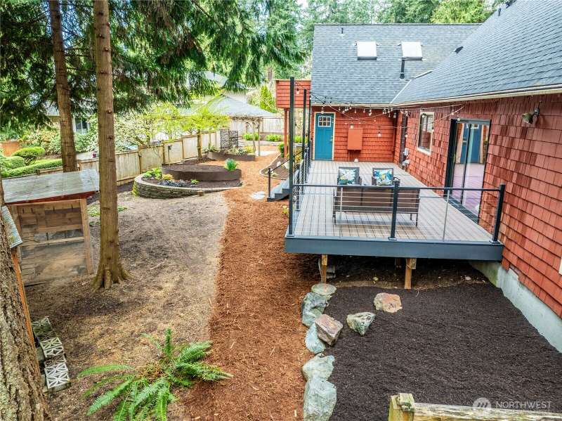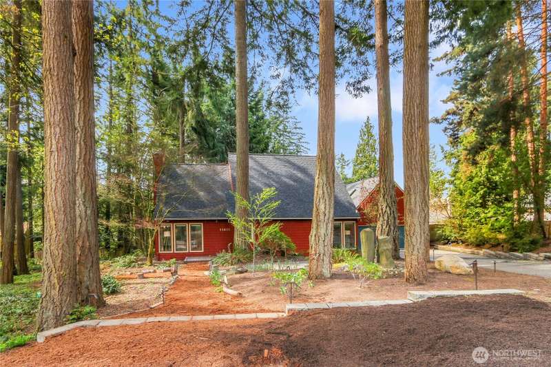 Tucked away in a peaceful setting, this exceptional home offers timeless charm & modern comfort. The spacious living rm features exposed beams, high ceilings, a cozy fireplace, & lrg windows framing views of gardens & surrounding woodlands. The kitchen is beautifully appointed with hickory cabinets, high-end appliances, & ample pantry space—opening to a generous deck ideal for entertaining. Brick& hardwood floors, skylights, & custom woodwork add warmth & character throughout. 2 bedrm. up A legal ADU above the garage offers flexible space for guests, Airbnb, or a private office. Outside, enjoy lush garden beds, a chicken coop—your own private escape just minutes from O.O. Denny Park, scenic walking & biking trails, and city.