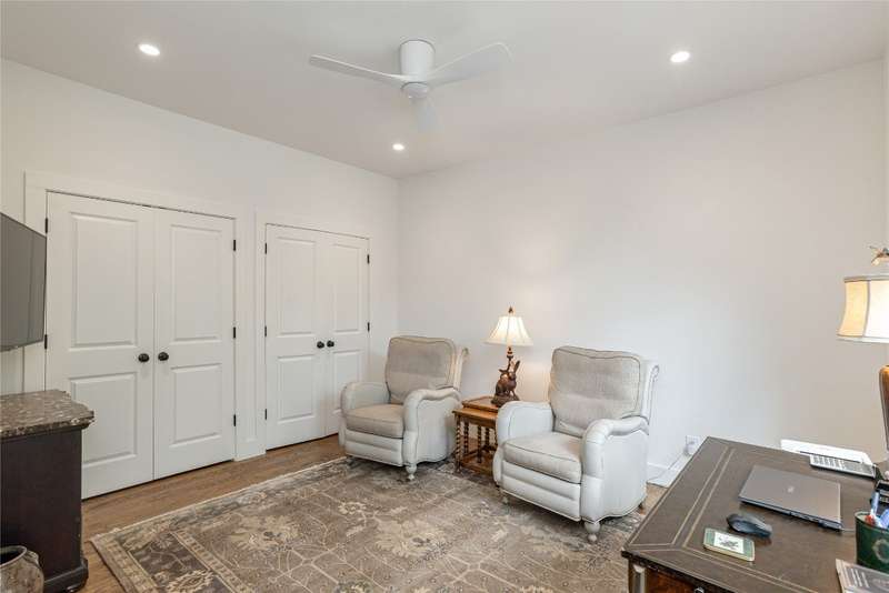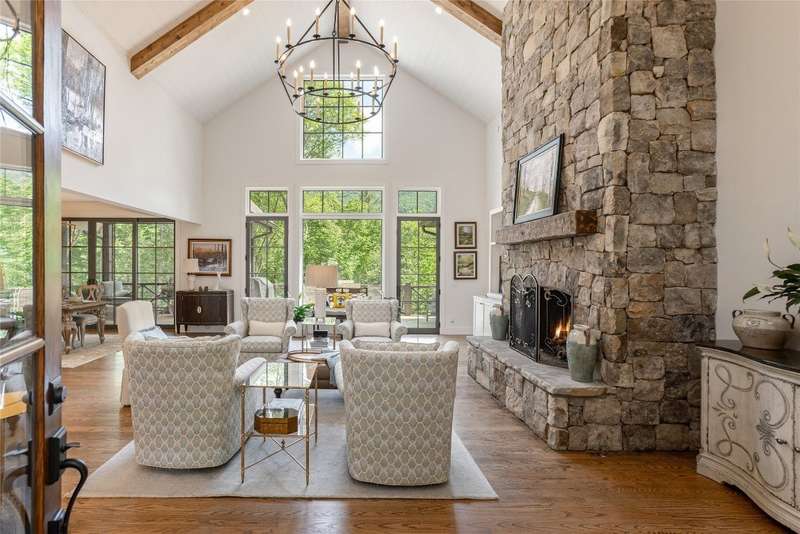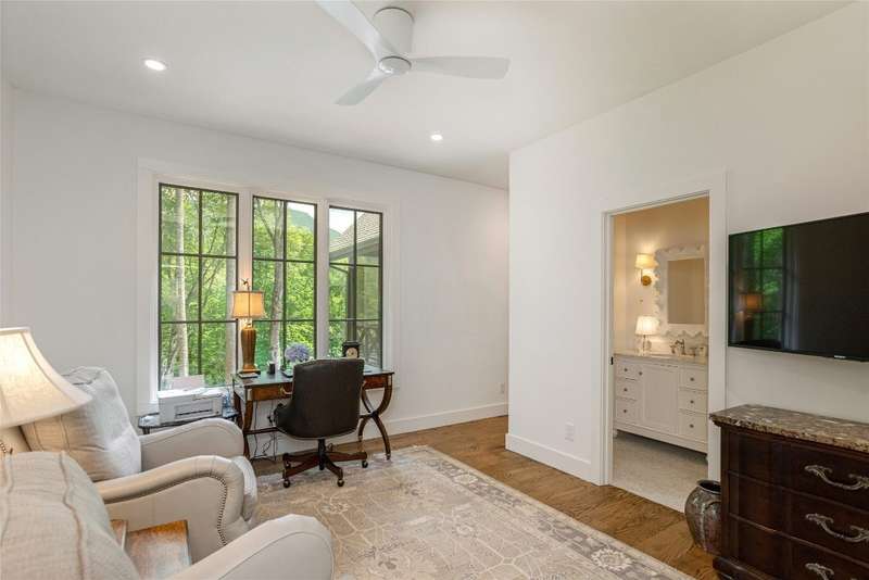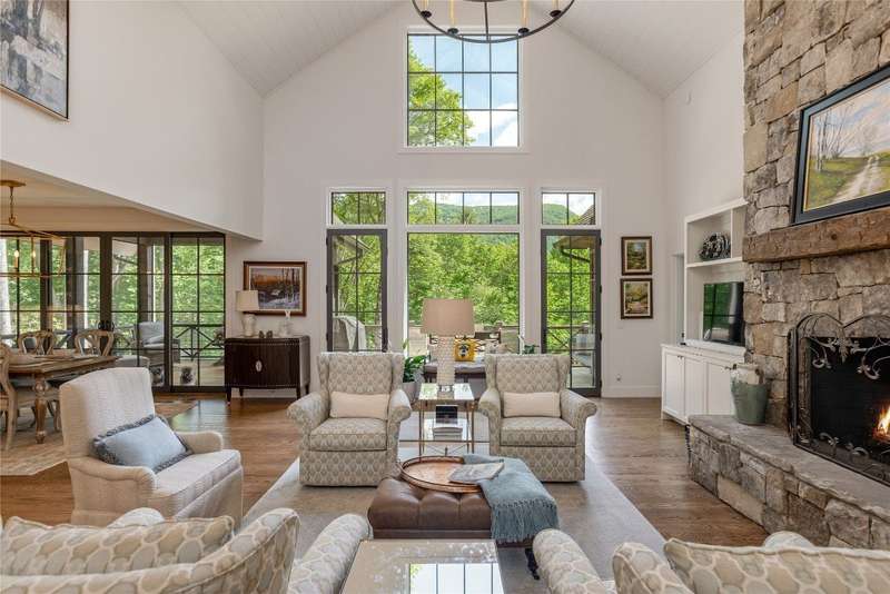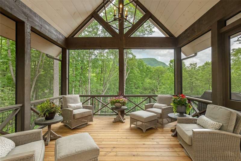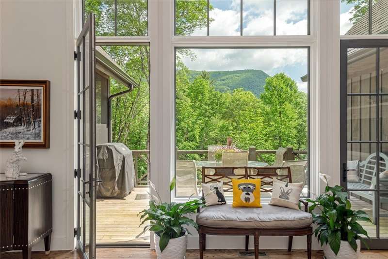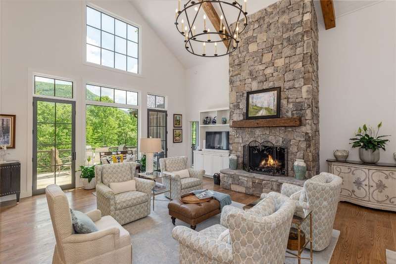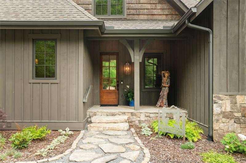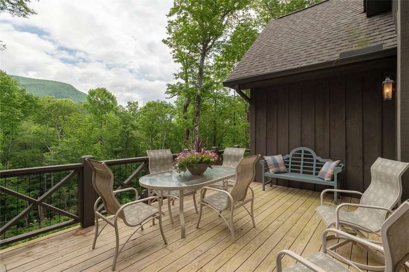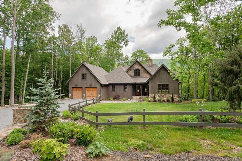 Built in late 2022, this beautiful home offers an incredible opportunity to live in the desirable Burlingame Country Club. Situated on a level-entry lot, it features a fenced and landscaped yard for added privacy and curb appeal. An abundance of windows fills the modern open floor plan with natural light and provides stunning year-round views of Hogback Mountain. The chef's kitchen is a dream, complete with high-end appliances and finishes. A soaring stone fireplace serves as the centerpiece of the inviting living area, perfect for relaxing or entertaining. The primary suite is a personal sanctuary with a luxurious bathroom, while two additional ensuite bedrooms offer comfort and privacy for guests. A finished room with a full bathroom above the garage is ideal for an office or overflow accommodations. Enjoy mountain living on the screened porch or open deck, designed for relaxation and taking in the views. Additional features include a whole-house generator and numerous thoughtful upgrades throughout. Don't miss the chance to own this remarkable home! Membership to Burlingame Country Club is by invitation, offering access to world-class golf, tennis, fitness, dining, and a welcoming social calendar - but is not required for ownership.