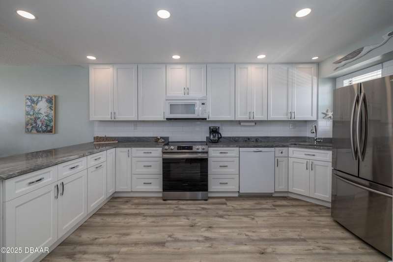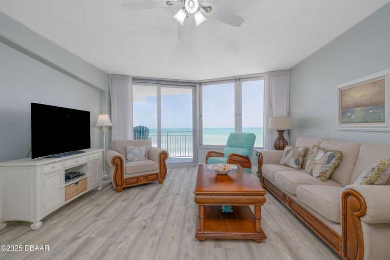Turn-Key direct ocean front beauty on no-drive beach. This unit has had a complete renovation and concrete restoration was completed on the building in '24. No assessments! Amazing ocean views from the stunning opened kitchen with granite counters, 42'' cabinets with soft-close drawers, recessed lighting, stainless fridge & range, Bosch dishwasher, and under-cabinet LED lighting. Luxury vinyl plank flooring (except carpet in 2nd bedroom), impact glass, light dimmers, marble window sills, and on-sight management. This unit comes beautifully furnished down to linens and dishes for your convenience. Balconies & railings recently redone as well. Building offers a community pool and club room. Located close to shopping and restaurants. All information recorded in the MLS is intended to be accurate, but cannot be guaranteed.