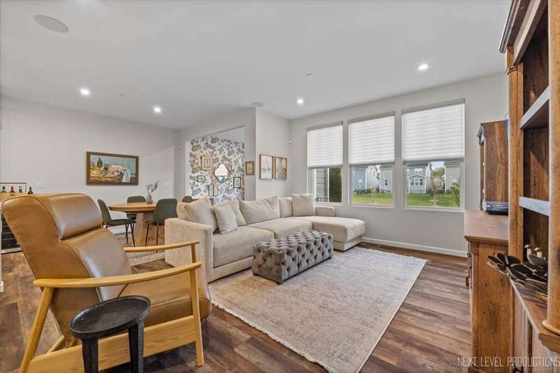 IMPRESSIVE PROPERTY WITH INCREDIBLE LOCATION! Every inch of this extraordinary 3-bedroom (+ loft), 2.1 bath residence exudes luxury, comfort and impeccable style. Built in 2022 and offering 2,474 sq ft of beautifully curated living space, this home feels professionally designed from top to bottom. Stepping inside you will find an open, light-filled layout where every detail has been thoughtfully chosen. The gourmet kitchen is a showstopper, featuring high-end stainless steel appliances - including a double oven - complemented by gleaming quartz countertops, a large undermount sink, designer tile backsplash, spacious island for gathering, an abundance of white shaker style cabinets and a spacious pantry. Just off the kitchen, a well-planned mudroom with built-in lockers adds both function and charm. The main living spaces flow effortlessly: light-filled family room, charming dining area and the most darling sitting area/sun room - Throughout the home there are custom window treatments, updated lighting and tasteful finishes that create an inviting & sophisticated atmosphere. Upstairs, there are three generously sized bedrooms with amazing closet space and great natural light. The primary suite is spectacular: Unbelievable walk-in closet with custom built organizers, double sinks, spacious shower and soaking tub. There is a versatile 3rd floor loft that offers the perfect balance of retreat and flexibility - ideal for a home office, den, or creative space. Off of the loft you step out onto your own private outdoor deck providing the perfect spot to relax or entertain. Thoughtful upgrades that instantly elevate the space are: cat 6 hi speed wifi throughout home, whole house built-in surround sound speakers, high-end appliances & cabinets, security system, rod iron spindles & luxury vinyl plank flooring (LVP). The property overlooks a peaceful retention pond, providing a serene backdrop and views from every window. The deep pour unfinished basement provides ample storage or excellent potential for finishing off the space. With newer Lennox HVAC, sump pump, and electrical systems, this property offers modern peace of mind along with its stunning aesthetic. The location of this townhome is appealing with its extremely close proximity to interstate 88, 10 min drive to downtown Naperville, hop skip to Danada Square, and quick trip to schools and park district facilities. This is not just a home - it's a statement of style and quality. Every room tells a story of thoughtful design, timeless materials, and elegant living in one of Naperville's most desirable locations. * home has been freshly painted *Simplisafe Security System can convey