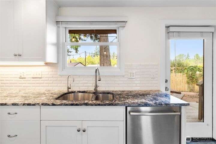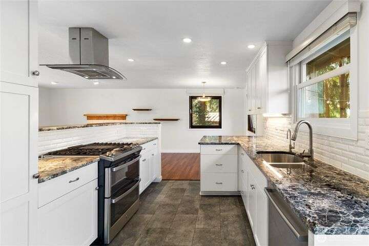 This lovely home near Whatcom Falls Park and Galbraith Mtn is an entertainers dream! The beautiful, updated kitchen features a 2024 gas stove, soft close cabinets, granite counters, SS appliances and open floorplan to living and dining rooms. European style windows on lower floors and engineered flooring on the main floor. Large 2nd living area has a wood stove for those chilly nights. Fully fenced back yard has a Big Rock Garden feel, territorial view and a large deck - perfect for summer BBQ's. A 20x40 shed has water/electricity - potting shed? workshop? or chicken coop? Front yard has a large deck for welcoming guests plus there are 2 raised beds, blueberry/raspberry bushes and an herb garden. Close to town and shopping/restaurants!