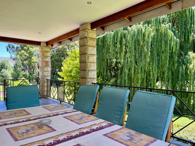 Nestled in the serene Clarens Golf and Trout Estate, this well-built 4-bedroom house offers a perfect blend of comfort and entertainment. Boasting 4 bedrooms, 3 bathrooms, including 2 en-suite, the residence features a spacious stoep with a built-in braai for outdoor gatherings. A bonus patio with a working jacuzzi adds an extra touch of luxury. The upper level comprises 3 spacious bedrooms, a living area, kitchen, and a separate scullery. The lower level houses a family unit with a generously sized room, bathroom, and kitchenette, currently utilized as a self-catering guesthouse. Whether you're seeking an investment property, a holiday home, or a permanent residence, this property caters to various needs. A single garage and one under roof parking completes the package. Currently used as self-catering guesthouse so a good buy for investment or relocation. Furniture can be negotiated.