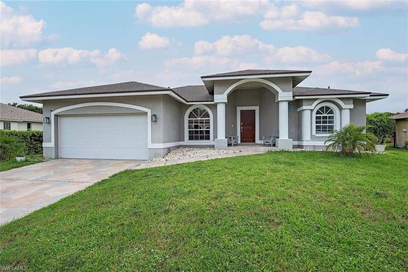 Welcome to your dream home in desirable Marco Island! This updated single-family pool home exudes Florida charm and modern elegance. Step inside to an inviting open floor plan that offers a graceful flow, perfect for both entertaining and everyday living. The beautiful solid surface countertops and stainless steel appliances in the kitchen create a stylish yet functional space for culinary enthusiasts. The master bedroom is a true retreat, featuring a luxurious freestanding soaking tub and a modern walk-in shower, ensuring your personal oasis for relaxation. Step outside into the screened lanai, where you can unwind by the inviting pool sunny pool, ideal for soaking up the sun or enjoying a refreshing swim. Located just minutes away from the vibrant shopping, dining, and entertainment options that Marco Island has to offer, this home allows you to experience the best of the Florida lifestyle. Don't miss the chance to make this stunning property your own!