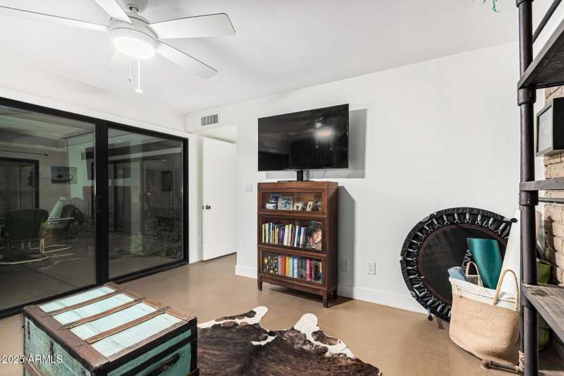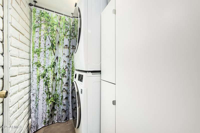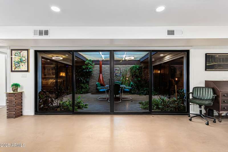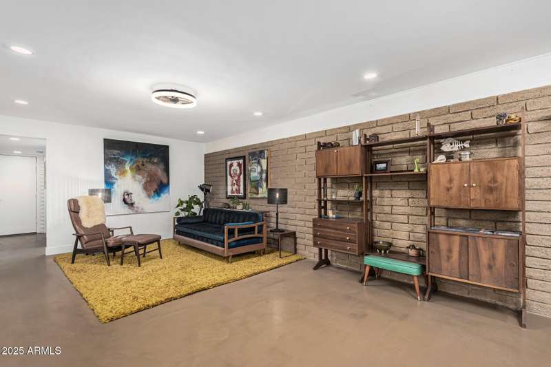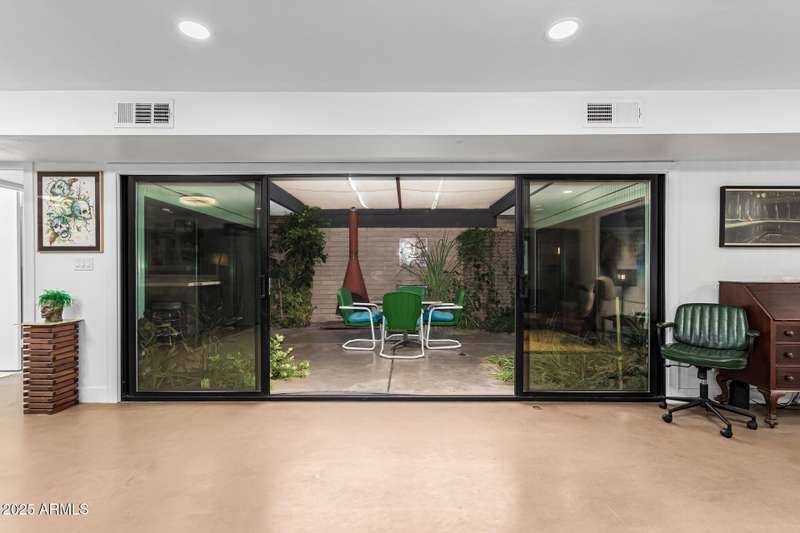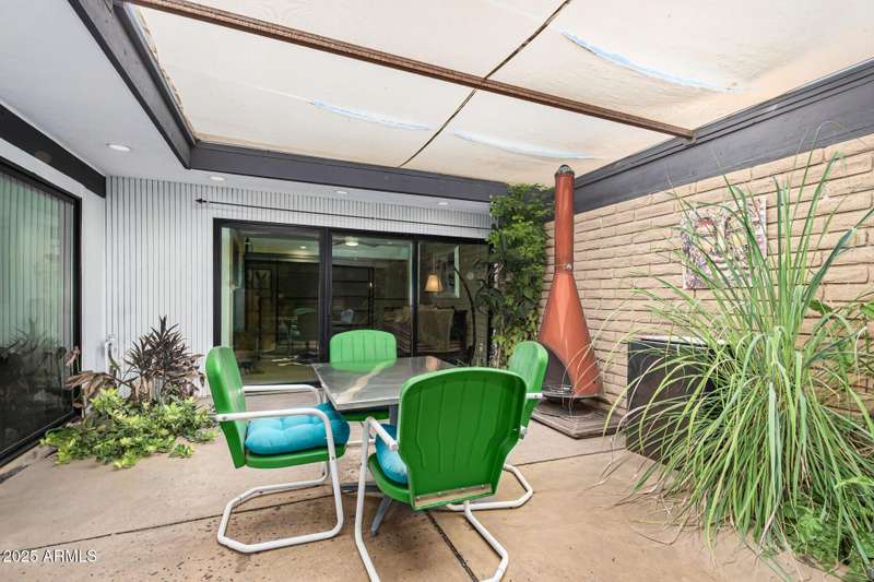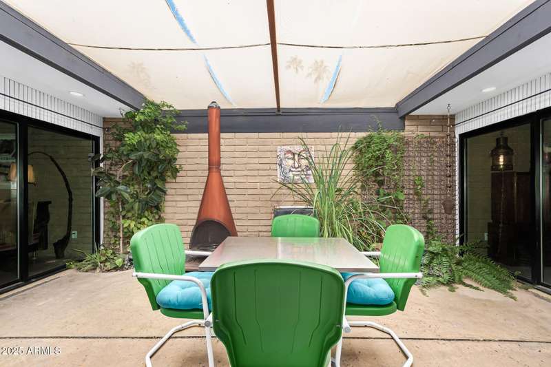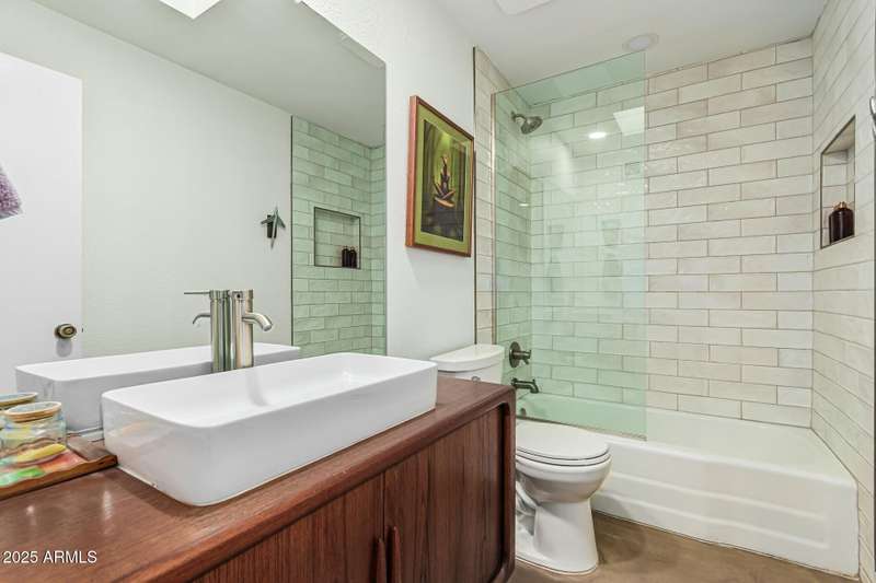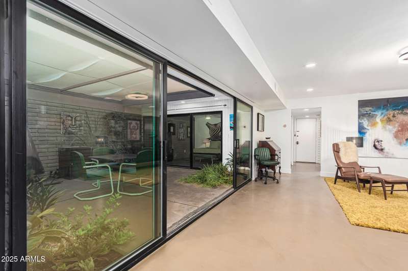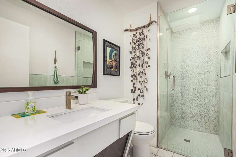 Discover Casa Moderna, a stunning fully remodeled mid-century gem nestled in the desirable Biltmore Heights neighborhood! This 2 bedroom, 2 bathroom home offers 1,424 sq. ft. of thoughtfully designed living space that perfectly blends timeless character with modern sophistication. Step inside to an open-concept layout featuring a split floor plan where the kitchen serves as the heart of the home. Custom-stained floating wood shelves, sleek flat panel cabinetry, quartz countertops, and stainless steel appliances bring a refined yet warm aesthetic. The primary suite offers a spa like retreat with beautiful terrazzo tile, a waterfall showerhead and a mid-century modern vanity that honors the home's original style carried through seamlessly into the guest bath as well. Enjoy indoor-outdoor living at its finest with an open-air atrium and new Milgard slider doors, creating the perfect flow for entertaining or relaxing. The patio is an architectural highlight, featuring polished concrete floors that reveal the natural stone beneathan authentic nod to mid century design. Additional upgrades include a brand-new HVAC system, in unit washer and dryer, and one designated parking space. Step outside to unwind by the community pool or explore nearby favorites like Biltmore Fashion Park, Arcadia, and Old Town Scottsdale. Casa Moderna isn't just a home, it's a modern reimagining of mid century living in one of Phoenix's most coveted neighborhoods.