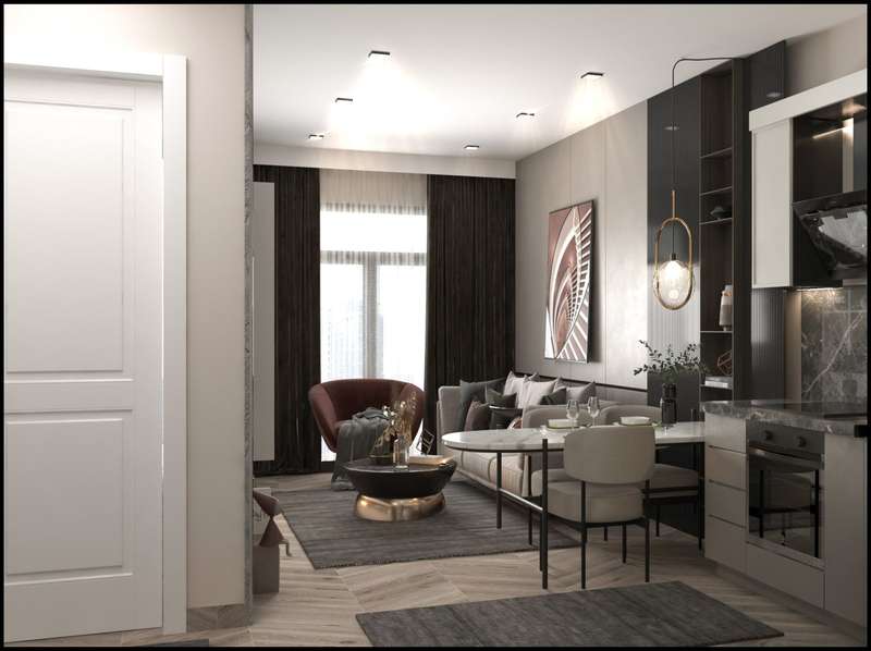 The complex has various apartment types. Some have an en-suite bathroom. Each apartment features a suspended ceiling, coat hanger, shower cabin, central satellite system, natural gas and air conditioning infrastructures, PVC double-glazed windows, 10 mm jointed parquet flooring, steel exterior door, and video intercom.