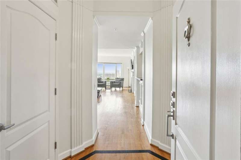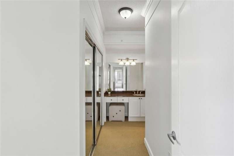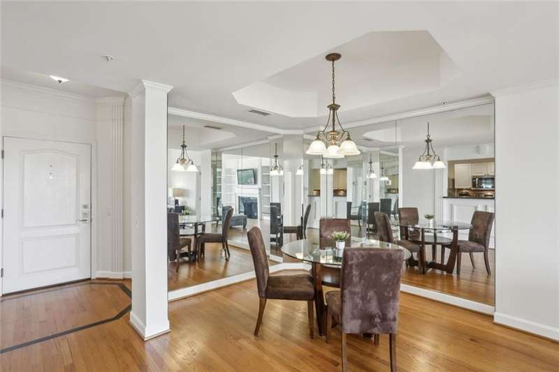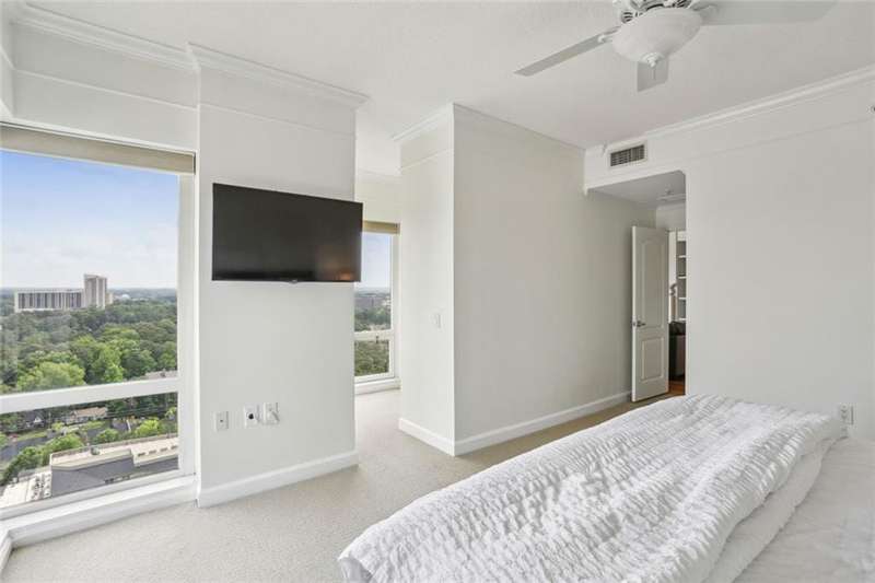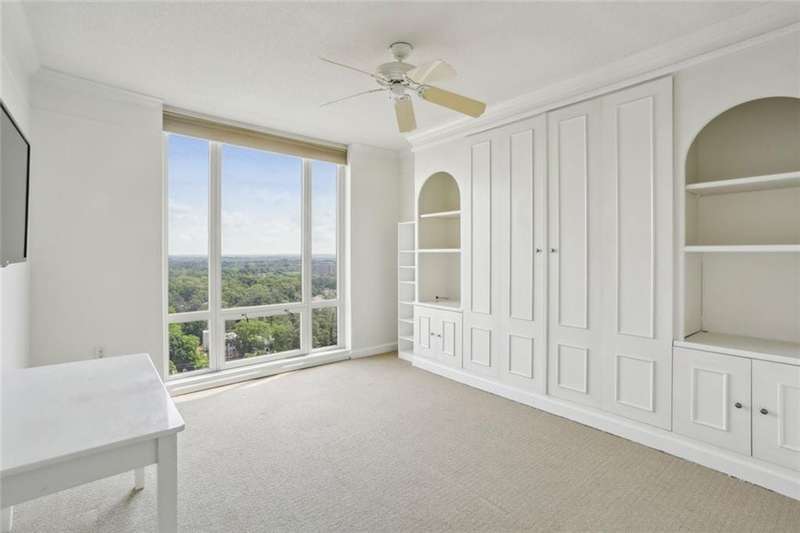 Experience sweeping skyline views stretching from Buckhead to Stone Mountain in this elegantly designed condo located in the exclusive Oaks at Buckhead. Floor-to-ceiling windows flood the living/dining area, as well as both bedrooms, with natural light and panoramic vistas of the Atlanta skylineproviding a stunning backdrop from sunrise to sunset. This unit offers a lovely decorative fireplace surrounded by built-in shelving in the living room area. The open-concept layout and roommate-style floor plan offer the perfect balance of shared space and private retreats. The primary suite features a lovely dressing table area and bathroom, generous walk-in closet, and breathtaking city views. The secondary bedroom includes custom shelving, a Murphy bed, and a generous dressing room, bathroom and an additional sink area. The well-appointed kitchen boasts granite countertops, stainless steel appliances, abundant cabinetry, and a pantry/storage area. Additional features include a welcoming entry foyer and a convenient in-unit laundry closet with a stackable washer/dryer included. All furnishings in the unit are included in the sale. Situated in one of Atlantas premier shopping and dining areas, youre just steps away from Lenox Mall, Phipps Plaza, Publix, and a wide array of restaurants and entertainment options. Commuting is a breeze with easy access to MARTA and interstates 75, 85, and 400. This secure, gated community offers an impressive array of amenities designed for comfort, convenience, and luxury living. Enjoy 24/7 concierge service, around-the-clock monitored security cameras, four rooftop terraces, two elegant club rooms, and contactless systems for guest parking. Additional features include a guest suite for visiting friends or family, a fully equipped fitness center with sauna, a saltwater pool and hot tub, on-site car wash station, bike racks, EV charging stations, a clubhouse, business center, and a conference room. The unit also comes with two deeded parking spaces, and ample visitor parking. Don't miss this incredible opportunity!