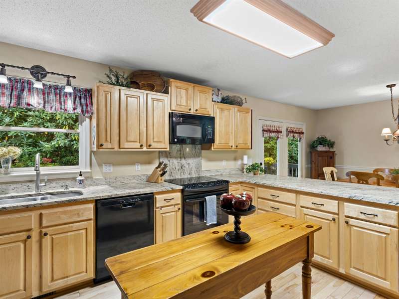 Nestled in a peaceful neighborhood, this welcoming home offers the perfect blend of seclusion and accessibility-just minutes from vibrant downtown Sylva and Dillsboro, and only 15 minutes to Franklin. Step inside to discover a warm and inviting open floor plan that seamlessly connects the kitchen, dining, and living areas, creating a cozy yet functional space for everyday living. The spacious primary bedroom features an ensuite bath, while two additional bedrooms share a guest bath. Beautiful maple wood floors add natural warmth throughout, and the stunning stone fireplace takes center stage, offering the perfect serene greenery and mountain charm. Relax on the covered front porch while soaking in the views, or unwind in the gazebo with an afternoon beverage. A full unfinished basement provides parking and abundant storage, while the outdoor shed with electricity is ideal for hobbies or a workshop.