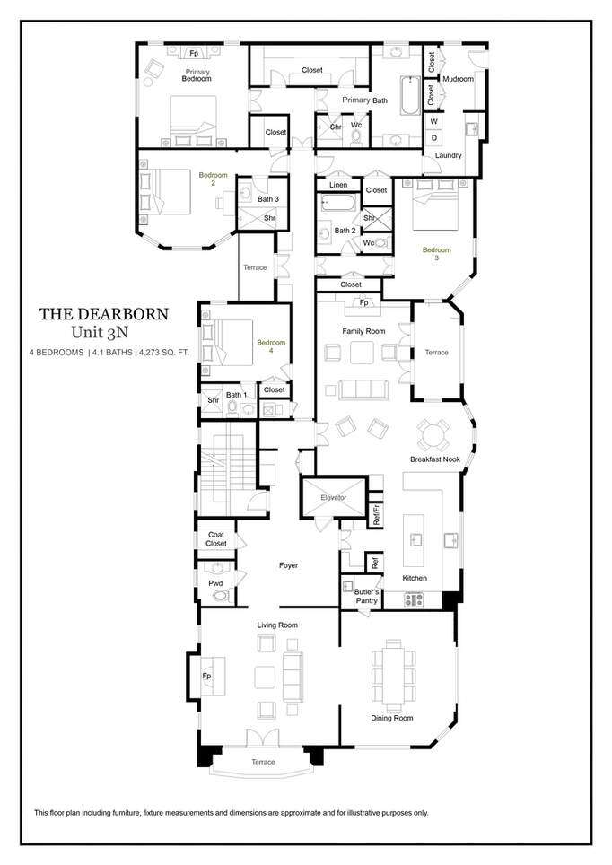 Eight new construction, exclusive, full-floor residences offer a refined lifestyle that blends eclectic interiors with unparalleled luxury and an estimated delivery date of 12 months. Discover an extraordinary opportunity to live boldly at 1447 N. Dearborn, an enduring Gold Coast icon. Nestled on a quiet street, these residences overlook treelined and courtyard views, offering a sense of peace in the heart of the city. Each residence at 1447 N. Dearborn boasts direct elevator access and expansive private outdoor spaces. Residence 3N is a 3 bedroom, 3.1 bath residence with 10 ft ceilings on both levels and exquisite selections for all finishes. With 4273 SQFT of living space, this sprawling condominium lives more like a single-family home. Common areas include a beautifully landscaped courtyard with a graceful fountain that offers a moment of stillness, a wellness room for yoga, meditation, and light exercise, and tandem, attached, heated garage parking for 2-cars. Estimated delivery is 12 months from the date of the executed contract.