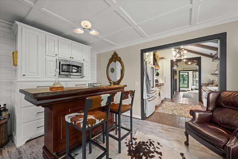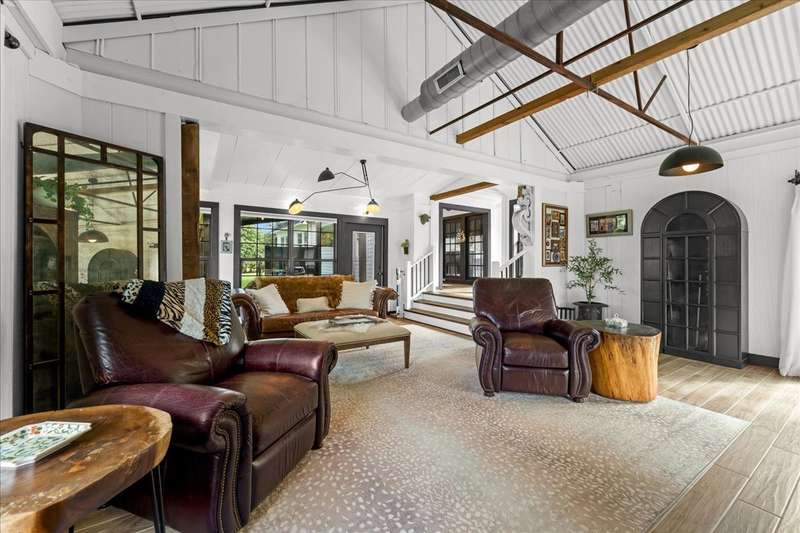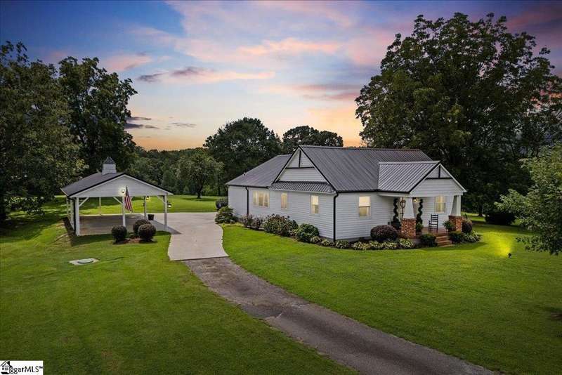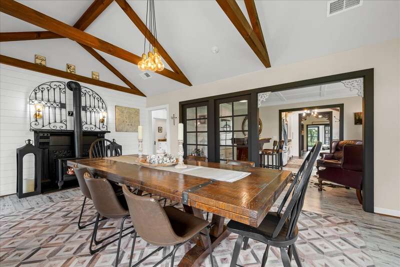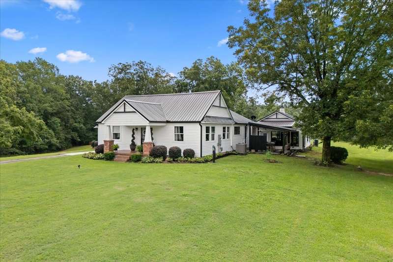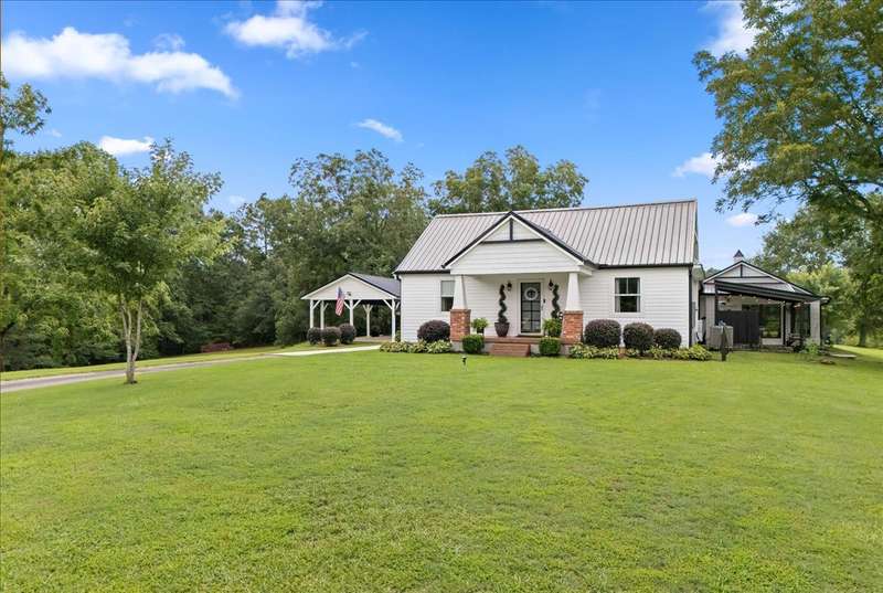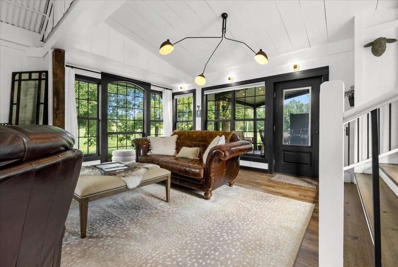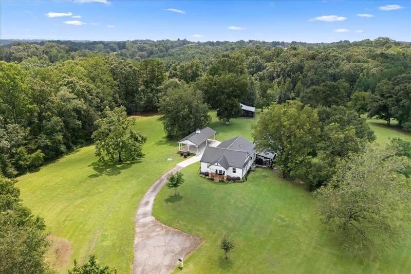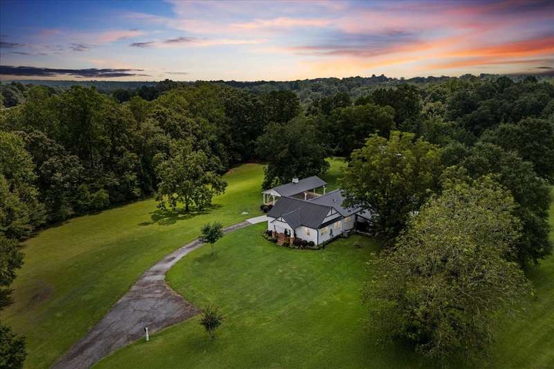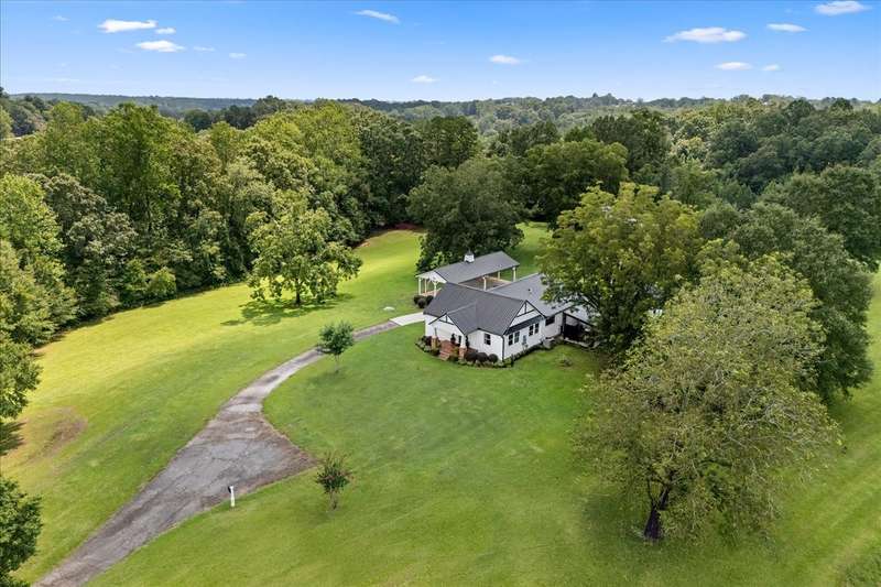 Exquisite and timeless, this custom farmhouse blends 1940's character with modern luxury perched on 4+ acres of serene countryside. Additions were added on, and the home was thoughtfully updated inside and out. It showcases three bedrooms, four full bathrooms, and multiple living spaces designed with both comfort and style in mind. There is a family suite attached to the rear of the home with a kitchenette and full bath, providing endless flexibility for in-laws, guests, entertaining, or even rental potential. The heart of the home shines with high-end finishes with luxury appliances, including two Italian gas ranges (Ilve + Bertazzoni), granite countertops, marble backsplash, multiple fireplaces, and a free-standing tub in both primary suites. Outside, every detail invites you to slow down and savor the setting. Multiple patios overlook rolling pastures, walking trails, local wildlife, and landscape enriched with fruit bushes and nut trees . A four-car carport is the perfect addition and can double as an elegant entertaining pavilion, while the striking barn near the rear of the property offers endless possibilities?from memorable gatherings to a picturesque event venue. Modern essentials?metal roof, dual tankless water heaters, two septic systems, and much more ensure the home is as practical as it is stylish. A rare blend of sophistication and country charm, this farmhouse is more than a home?it's a destination.