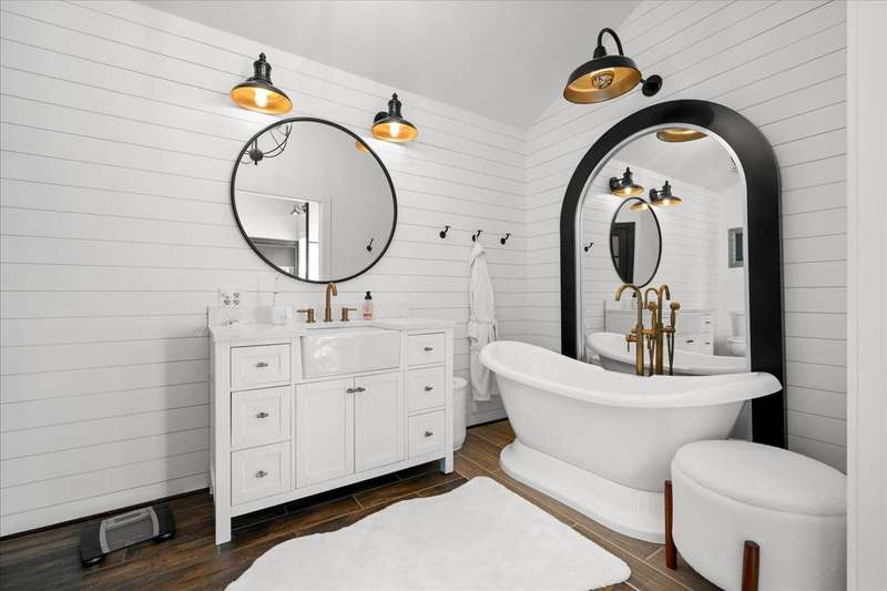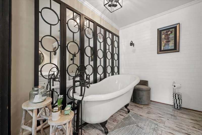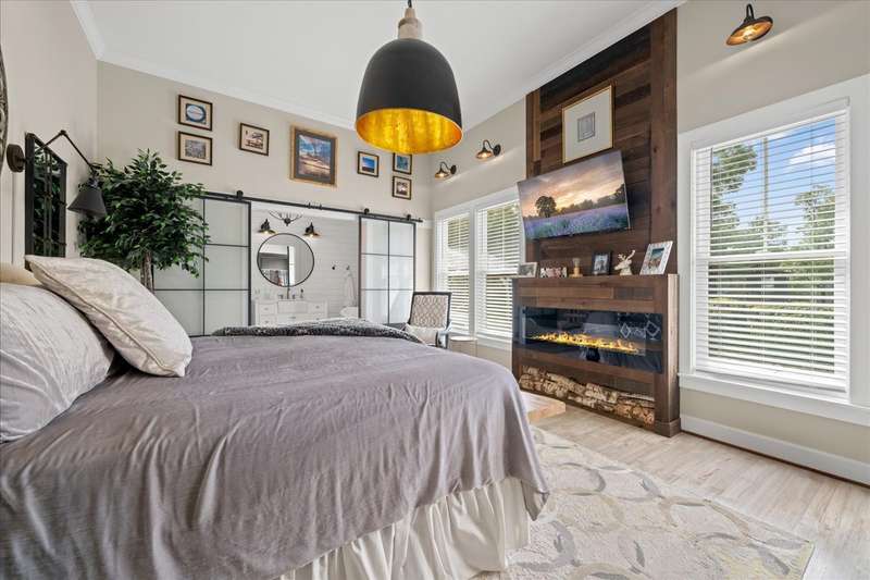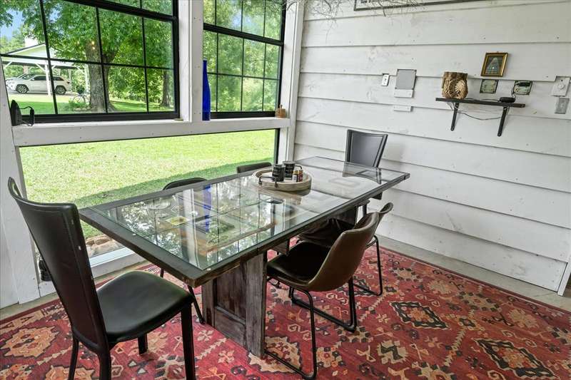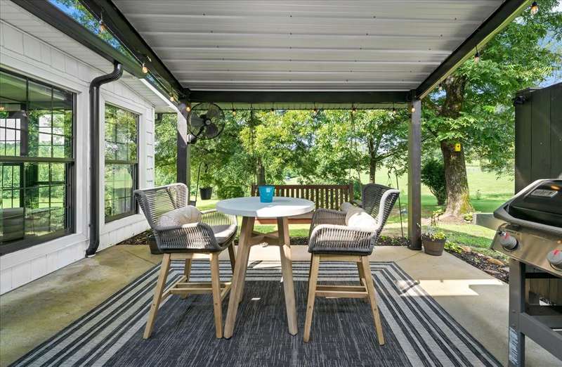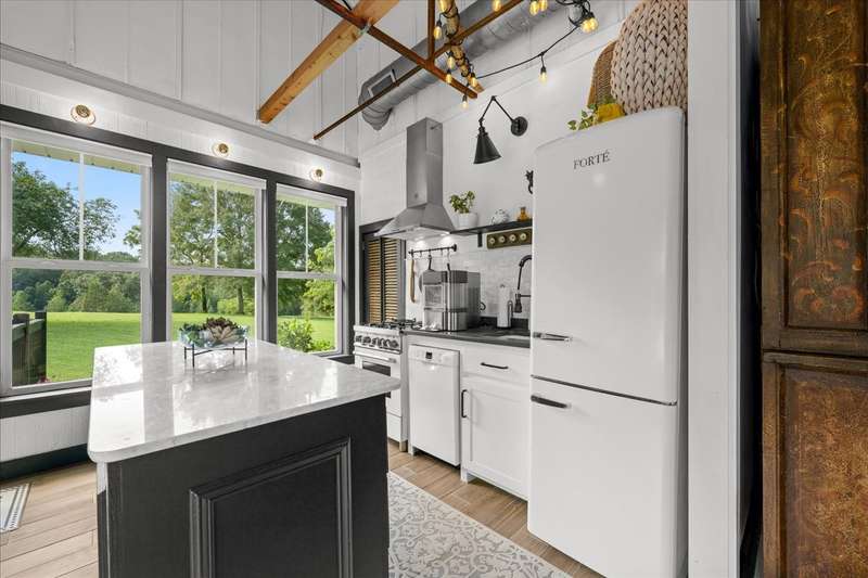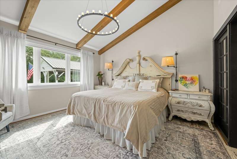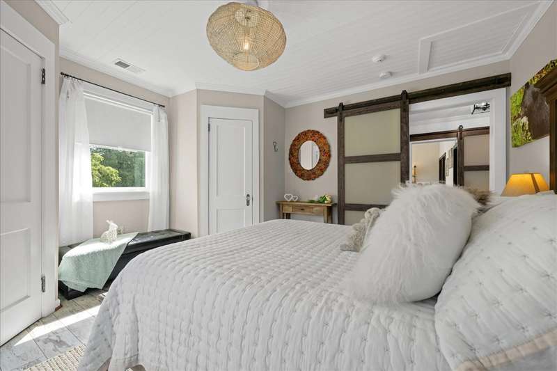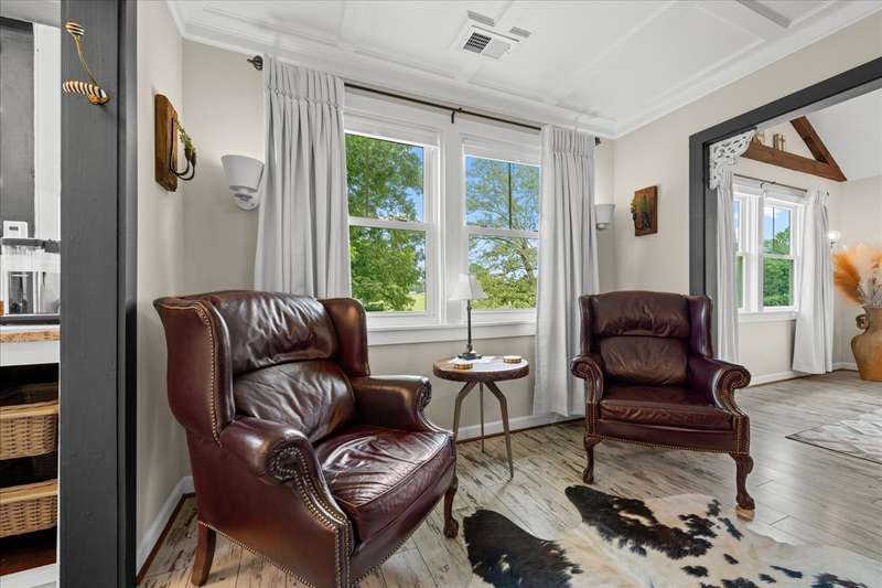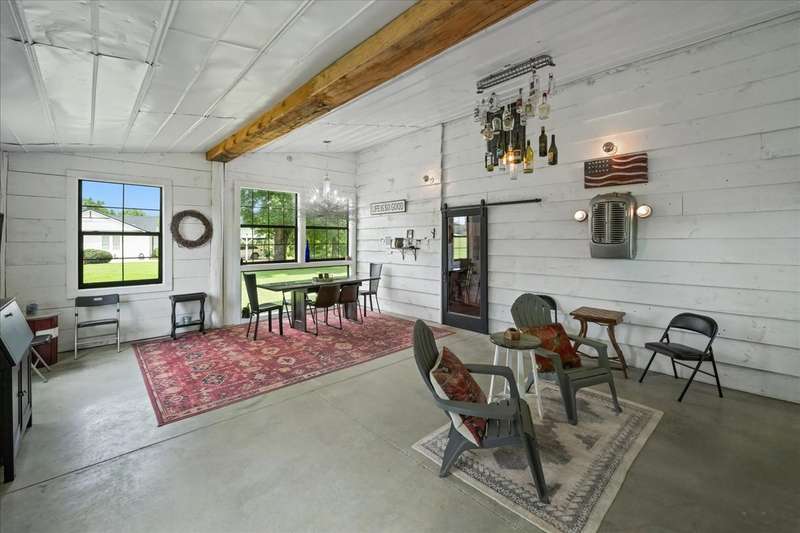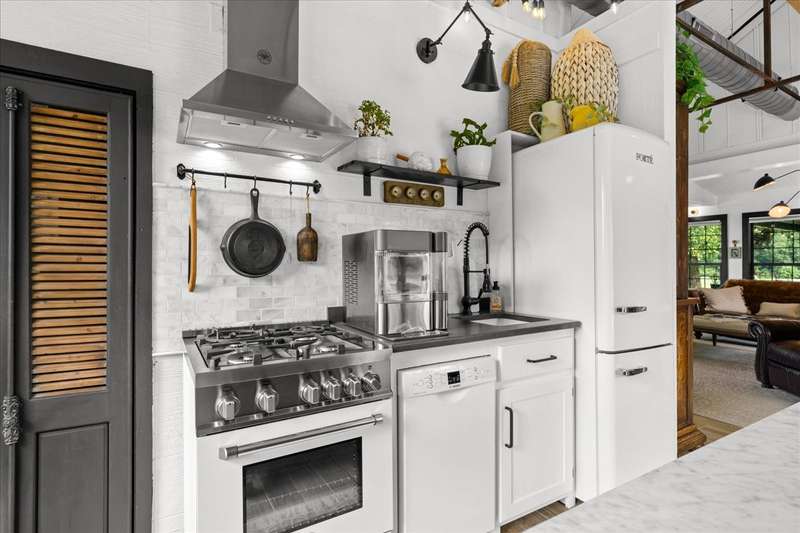 Exquisite and timeless, this custom farmhouse blends 1940's character with modern luxury perched on 4+ acres of serene countryside. Additions were added on, and the home was thoughtfully updated inside and out. It showcases three bedrooms, four full bathrooms, and multiple living spaces designed with both comfort and style in mind. There is a family suite attached to the rear of the home with a kitchenette and full bath, providing endless flexibility for in-laws, guests, entertaining, or even rental potential. The heart of the home shines with high-end finishes with luxury appliances, including two Italian gas ranges (Ilve + Bertazzoni), granite countertops, marble backsplash, multiple fireplaces, and a free-standing tub in both primary suites. Outside, every detail invites you to slow down and savor the setting. Multiple patios overlook rolling pastures, walking trails, local wildlife, and landscape enriched with fruit bushes and nut trees . A four-car carport is the perfect addition and can double as an elegant entertaining pavilion, while the striking barn near the rear of the property offers endless possibilities?from memorable gatherings to a picturesque event venue. Modern essentials?metal roof, dual tankless water heaters, two septic systems, and much more ensure the home is as practical as it is stylish. A rare blend of sophistication and country charm, this farmhouse is more than a home?it's a destination.