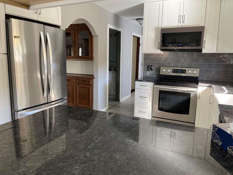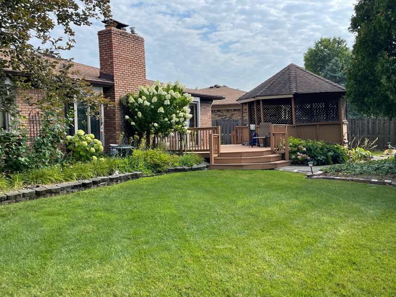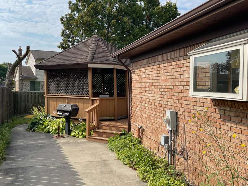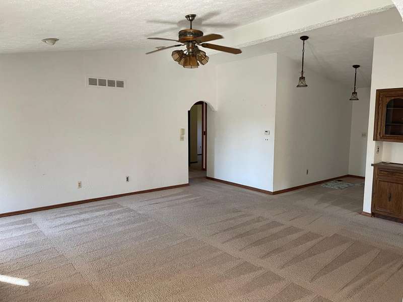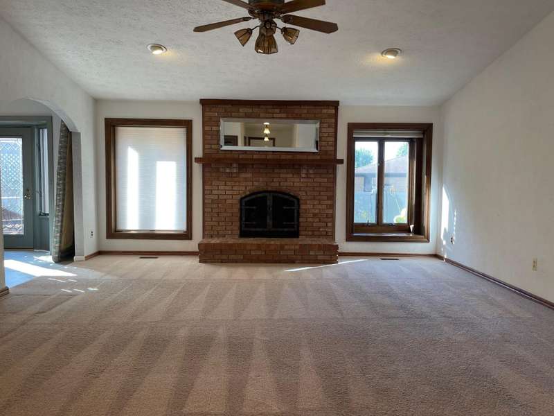 This one will go fast. 3 bedroom brick ranch ready for new owner! Large great room w/gas fireplace, vaulted ceiling, recessed lighting, built in china cabinet. Recently remodeled kitchen with garden window over sink, incl. microwave dishwasher oven washer dryer microwave refrigerator-freezer. Master bedroom with bay window, ceiling fan. 1st fl. laundry w/overhead cabinets. Leaded glass door from dining rm. to 14 x16 deck with gazebo. Fenced yard with dog run. Glass block basement windows. 2 full bathrooms, Primary bedroom has updated bathroom with walk in shower. 2nd full bathroom located across from 1st floor laundry near garage entry, so as not to track dirt through the home. Floyd Ebiling Elementary School is 0.4 miles away.