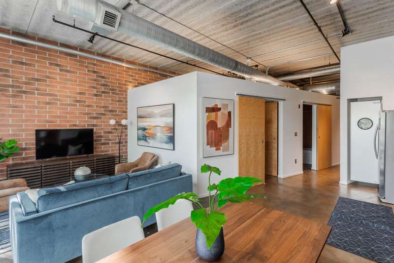 Discover urban living in this exceptional industrial-style loft, perfectly located just a short stroll from the vibrant heart of Downtown Royal Oak and an award-winning market merely steps away. This first-floor unit is a true embodiment of modern design and comfort, featuring stained concrete floors and soaring 11-foot ceilings that enhance the spacious feel of the home.The kitchen is a culinary enthusiast's dream with sleek granite countertops, European-style cabinets, and high-quality stainless steel appliances, all designed to cater to your cooking pleasures in an open layout perfect for entertaining. The living space is bathed in natural light thanks to large wall to wall windows. Retreat to the master bathroom, where functionality meets style with double sinks, European glass shower doors, and industrial sliding track doors that add a unique touch to the space. Exposed brick elements throughout the loft echo the building's industrial heritage, providing a warm, textured backdrop to your personal decor. Step outside onto the stamped concrete patio, an exclusive feature of this unit that includes a private entrance, offering a perfect spot for morning coffees or serene evening relaxation. Positioned within 20 minutes of almost anywhere in Metro Detroit, and with easy access to interstates I-75 and I-696, this loft is not just a home but a gateway to explore the rich offerings of the area. Experience the blend of industrial aesthetics with modern luxuries in this not-to-be-missed Royal Oak loft, an ideal choice for those seeking style, convenience, and proximity to the best of city living.