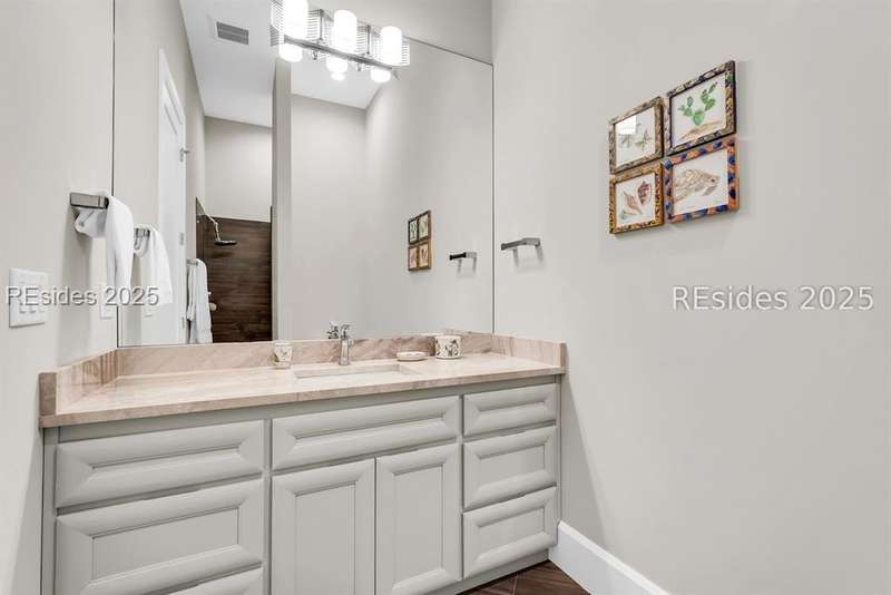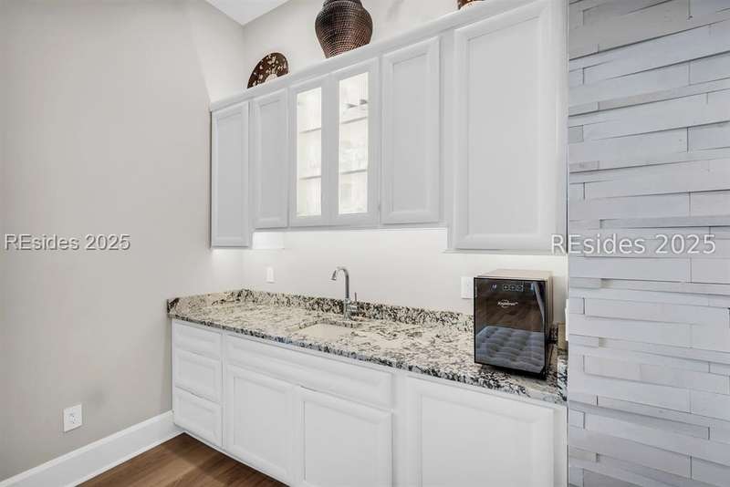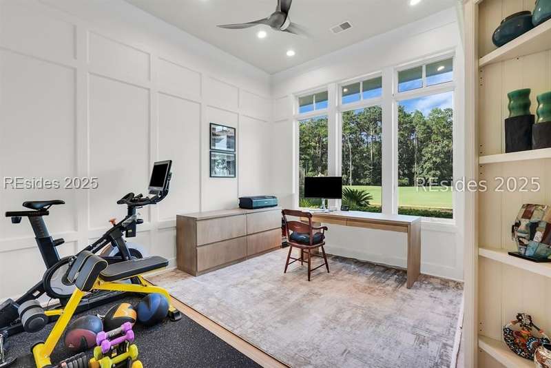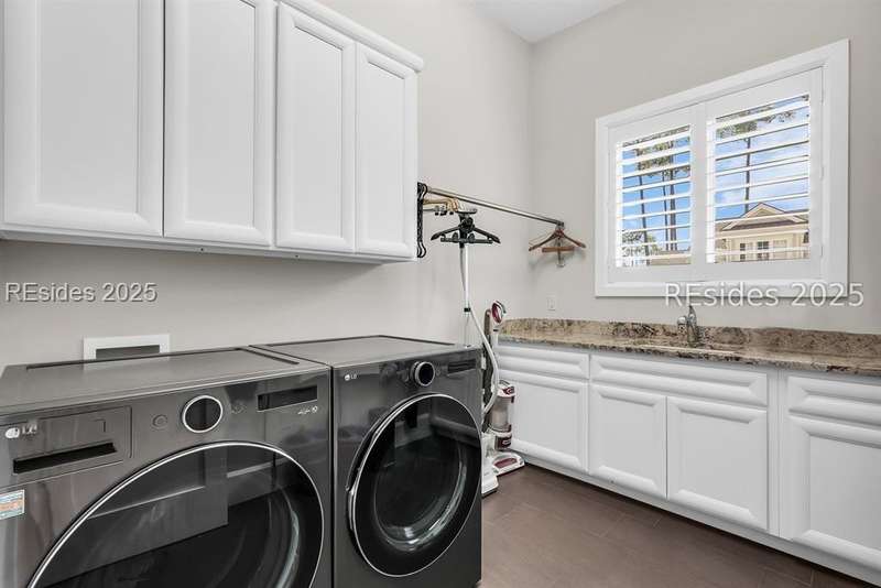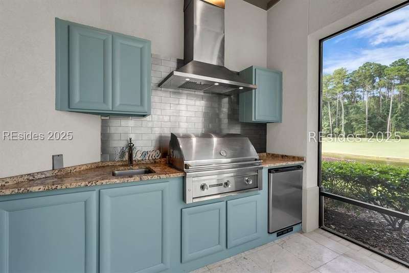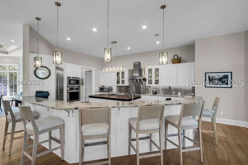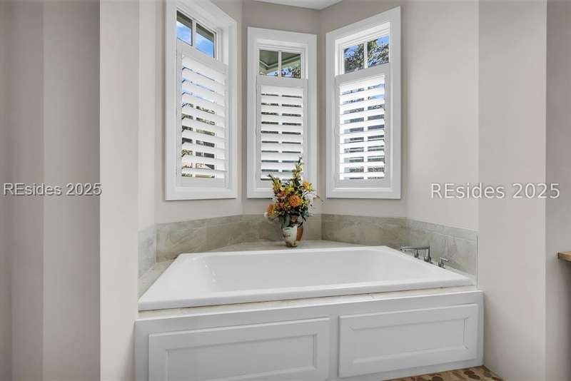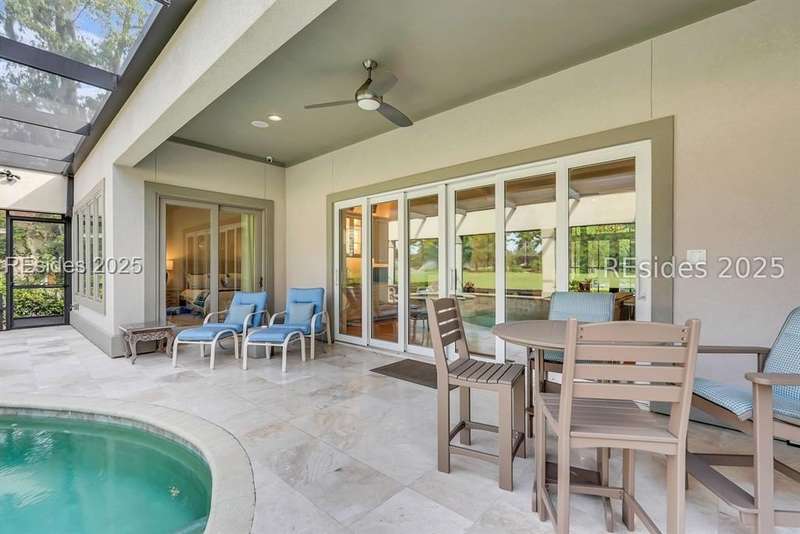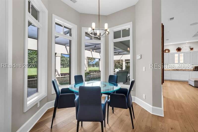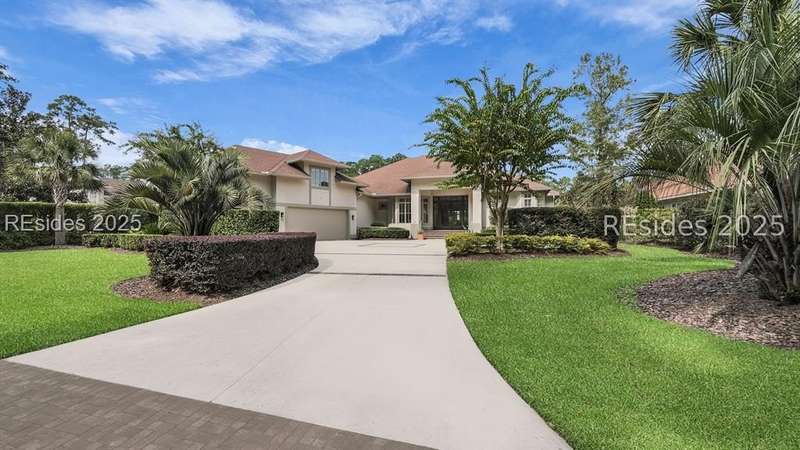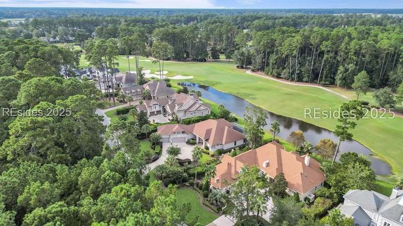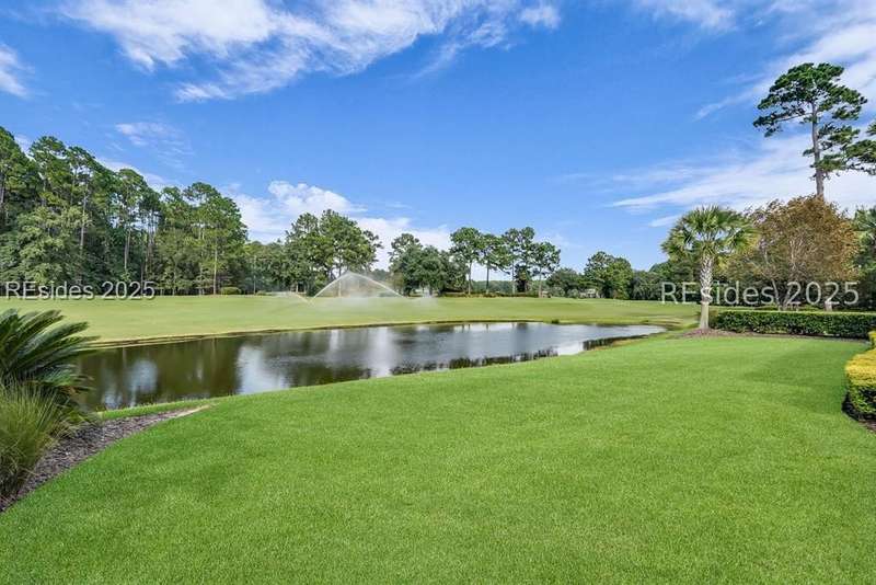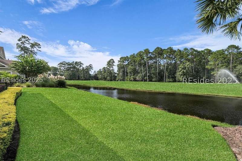 This stunning modern-transitional home is perfectly situated on a prime water and golf view homesite, offering elegance, comfort, and exceptional upgrades throughout. The heart of the home is the grand great room, highlighted by soaring tray ceilings and a custom-designed movie theater focus wall with a lighted mantle and built-in surround sound speakers. Just beyond, the screened lanai invites you to relax with its crystal-blue dipping pool, spa, cascading water feature, and fully equipped outdoor kitchen creating a true Lowcountry oasis.The chefs kitchen combines style and function with a Fulgor Murino induction cooktop, Thermador appliances, a spacious island, and an adjacent breakfast nook overlooking the lagoon. A formal dining room provides an elegant setting for entertaining. The home also includes a large office with custom removable bookshelves and wide windows that capture the morning sun and tranquil lagoon views.The owners suite is a spa-like retreat featuring a walk-in shower, dressing table, bidet, and abundant natural light. Two generous guest suites are located on the first floor, while a bonus room over the garage provides flexibility for a fourth bedroom or media space. A dedicated media closet with in-wall cabling is already in place to support a state-of-the-art home theater.Additional details include plantation shutters throughout, a wet bar with in-cabinet wine racks, and a spacious two-car plus golf cart garage with epoxy flooring, cabinetry, sink, and a Gladiator track system for bikes and gear.3M film on all windows applied 2003 for UV and hurricane protection. The home also offers easy walk-in attic access, spray-foam insulation for efficiency, and beautifully maintained landscaping that enhances its curb appeal.Every detail has been thoughtfully designed, from upgraded fixtures and stunning wood floors to the seamless blend of classic elegance and modern luxury.2024 property taxes for resident were $6750.