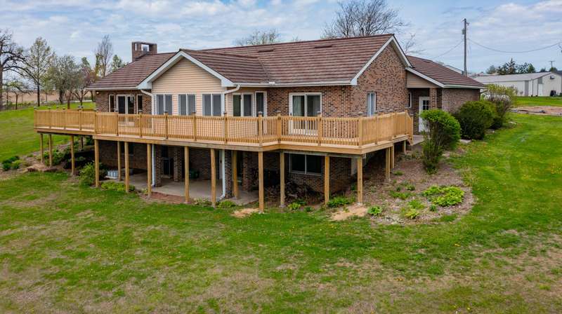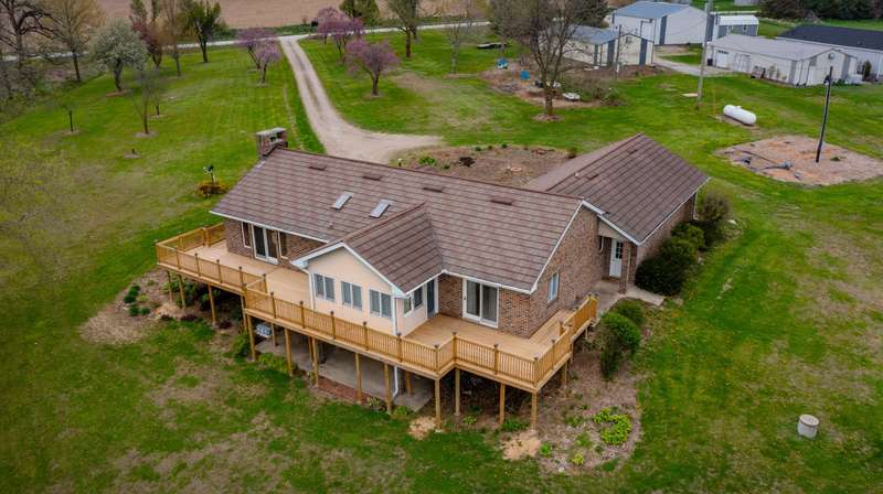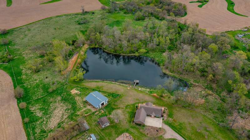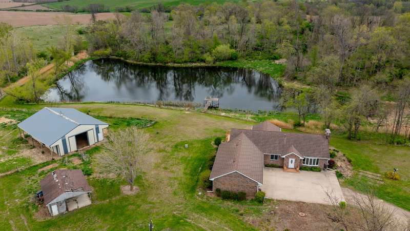 A rare find in Jasper County on 24.4 acres. This one-owner custom brick ranch home built in 1992 offers stunning views of the countryside! Enjoy paddle boating or fishing in the 2-acre pond. The pond views from the back of the home and the new upper deck will likely draw you in. Functional layout throughout. Starting with the large livingroom to gather with vaulted ceiling, french doors to the back deck and a wood fireplace for those cozy country nights. Kitchen offering plenty of cabinet storage, counter space that is open to dining. A sunroom with access to the deck perfect for the morning sunrise! A total of 4 bedrooms and 3 full bathrooms with a finished walkout basement. This unique property has three large shop buildings all on slab with electric and water and two that offer heat. A horse barn that can accommodate 4 stalls. With plenty of room to garden, run your business or just live life uninterrupted this brings so many opportunities! Have you been searching for a place you can have family build on the same ground? Easily divide off two acres to the north! Experience all this property has to offer and schedule your private tour today!