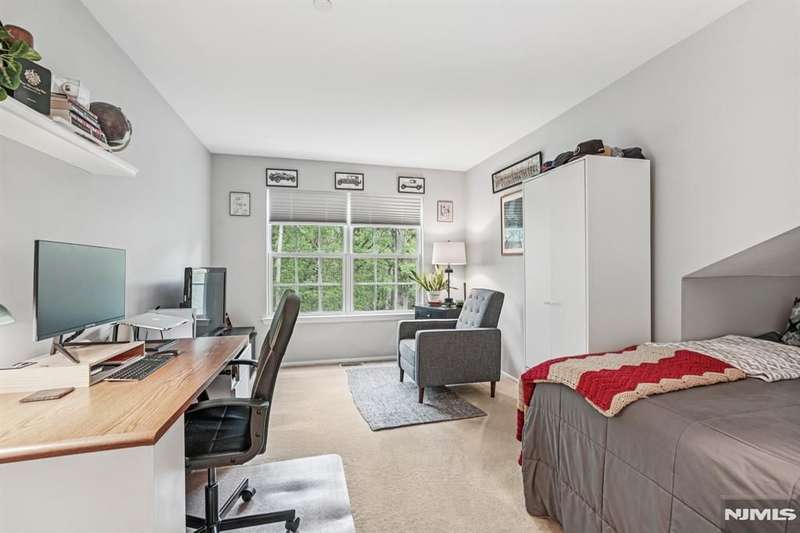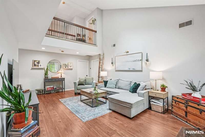 Welcome home to this 3-bedroom, 2.5-bathroom Townhouse in the highly sought-after Willow Walk community. Step into the inviting entry foyer that opens to a spacious living room with soaring ceilings, skylights, and expansive windows, filling the space with natural light and a warm, welcoming atmosphere. Sliding glass doors lead to the rear deck, where you can enjoy your morning coffee surrounded by tranquil wooded views. The living room flows effortlessly into the elegant dining room, ideal for intimate dinners or lively gatherings. The kitchen features custom cabinetry, marble countertops, and stainless steel appliances, making both everyday cooking and entertaining a delight. The first-floor primary suite offers a walk-in closet and ensuite bath and is currently being utilized as comfortable home office. The second floor boasts a versatile loft with two bedrooms, full bath and laundry. An attached 1-car garage, driveway parking, and guest parking add convenience. Willow Walk is a pet-friendly community designed for an active, vibrant lifestyle, offering an in-ground pool, clubhouse, tennis court, playground, and scenic walking and biking paths. Ideally located near NYC transportation, shopping, and dining, this home combines comfort, convenience, and resort-style amenities perfect for year-round enjoyment.