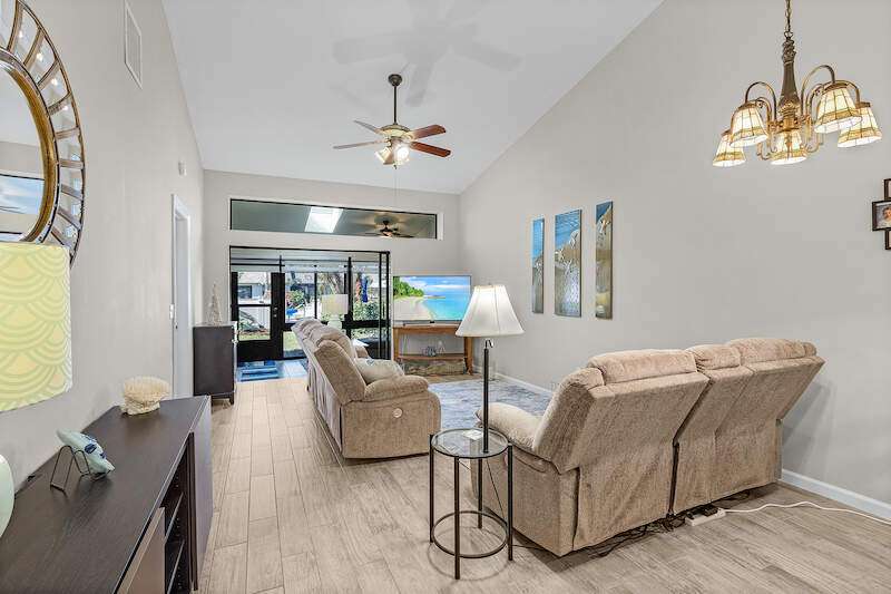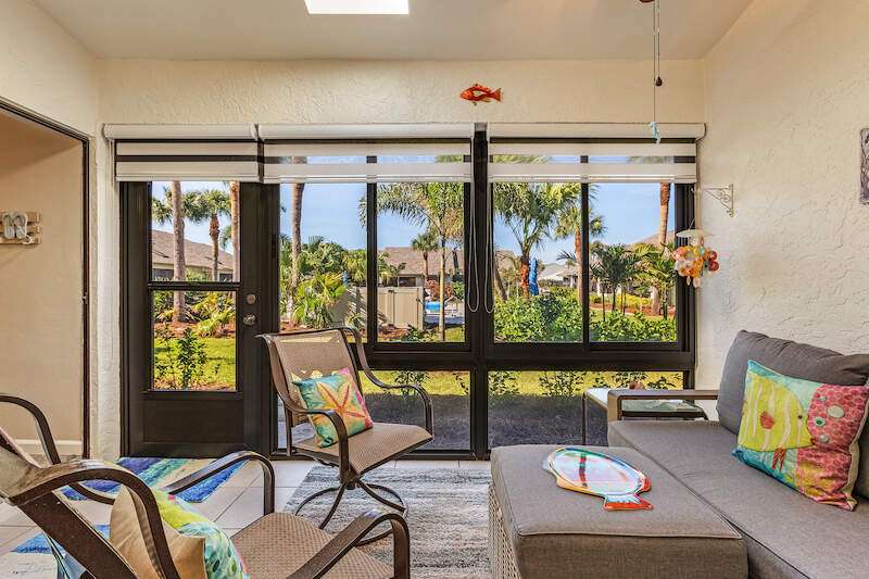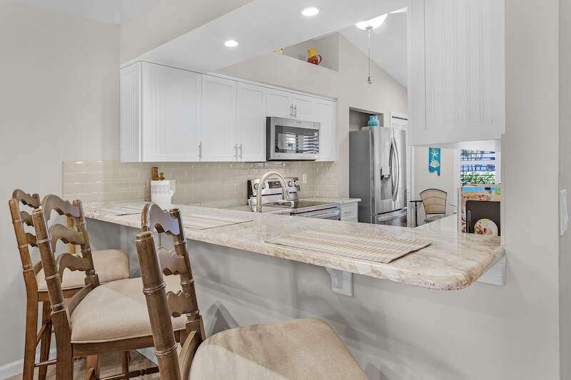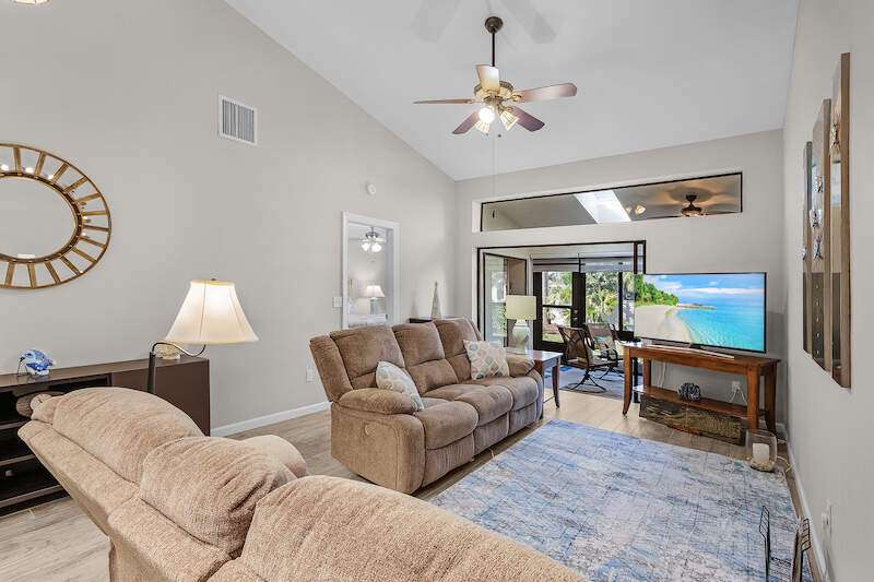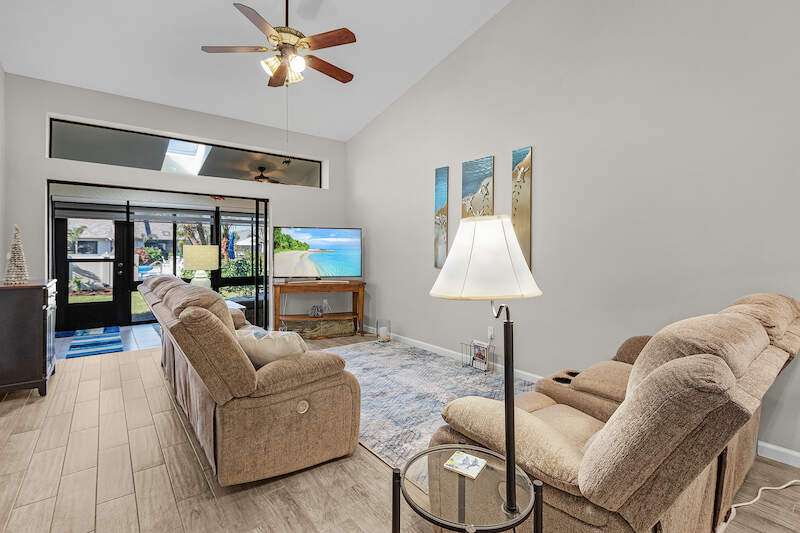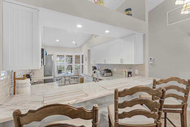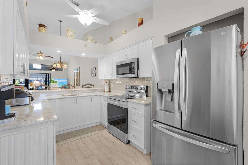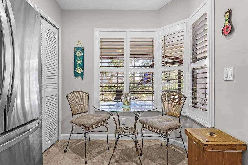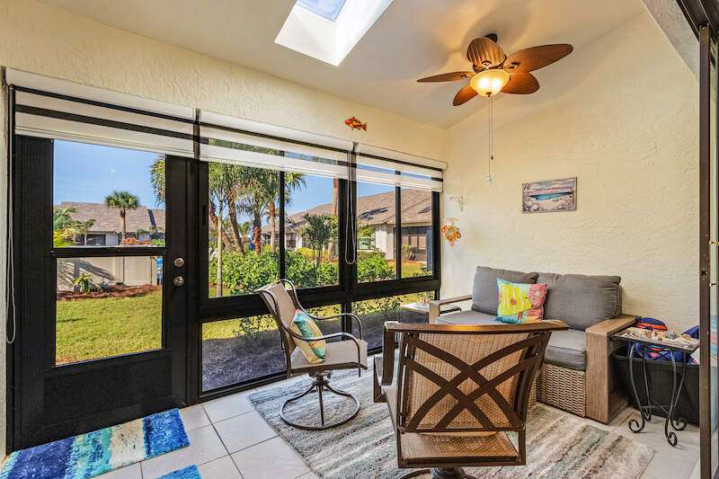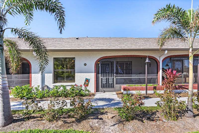 Welcome to your new Attached Villa home in South Fort Myers, where luxury meets leisure in this gated community of Cinnamon Cove. This gorgeous villa has stunning views of the outdoor spaces featuring a pool, lush green landscaping, and dual screened lanai's with the rear lanai able to be open to the fresh air or close the sliding windows and make it under air extra space so you can pick up that good book and just relax. Inside, the residence you'll find 2 bedrooms, 2 bathrooms, all stainless appliances(less than 2 years old), laundry in residence for ultimate convenience and a new larger water heater. This beautifully updated and remodeled home offers granite counters in kitchen and bath, all custom cabinets by Cornerstone and Plantation shutters that gives the perfect blend of elegance and comfort. The large clubhouse offers an array of social activities, fitness center, billiards, tennis, pickleball, and bocce ball. Revel in the proximity to popular beaches like Bunche Beach, Fort Myers Beach, and Sanibel Island. Enjoy convenient access to shopping, dining, hospitals, and the international airport, all just minutes away. Embrace the essence of comfortable living as you create your own story in this very active community.
