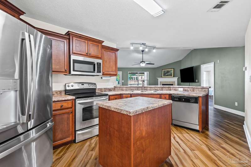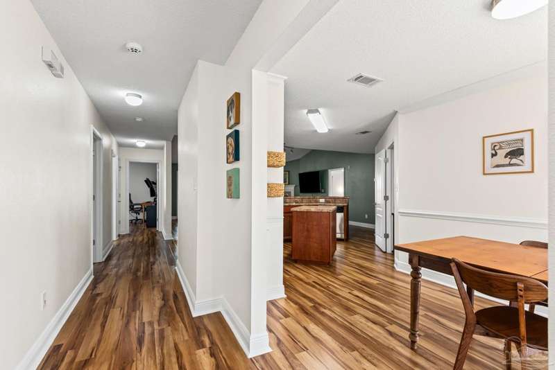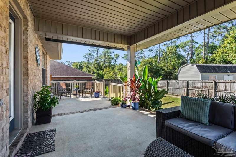 Discover this beautifully maintained 4-bedroom, 2-bath home in the desirable Robin's Ridge Subdivision. Conveniently located near Davis Hwy and I-10 yet tucked away from the hustle and bustle, this move-in-ready home offers the perfect blend of comfort and convenience. Inside, you'll find gorgeous Corotek vinyl flooring in the main living areas and porcelain tile in the baths. The spacious primary suite features an oversized porcelain shower with a frameless glass door, creating a spa-like retreat. The home's neutral d���©cor and meticulous cleanliness showcase true pride of ownership. Recent updates include a new roof with transferrable warranty (2025), A/C replaced in 2022, new garage door springs with warranty (2025), new patio space (2023), new toilets (2023), new garbage disposal (2024), fresh paint (2025), and a transferrable, prepaid HVAC/AC service appointment scheduled for Spring 2026. This home also includes a transferrable pest control bond through Knox Pest Control. Outside, enjoy a beautifully landscaped yard with a separate irrigation system, plus a covered patio to unwind on after a long day. A newer tool shed offers convenient storage for all your outdoor equipment. This two-owner home has been lovingly cared for and thoughtfully updated, offering a clean, comfortable, and truly move-in-ready space you'll be proud to call your own. Don't miss your chance to see this beautiful home!