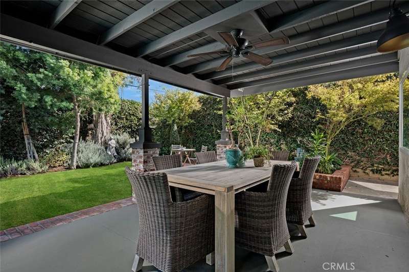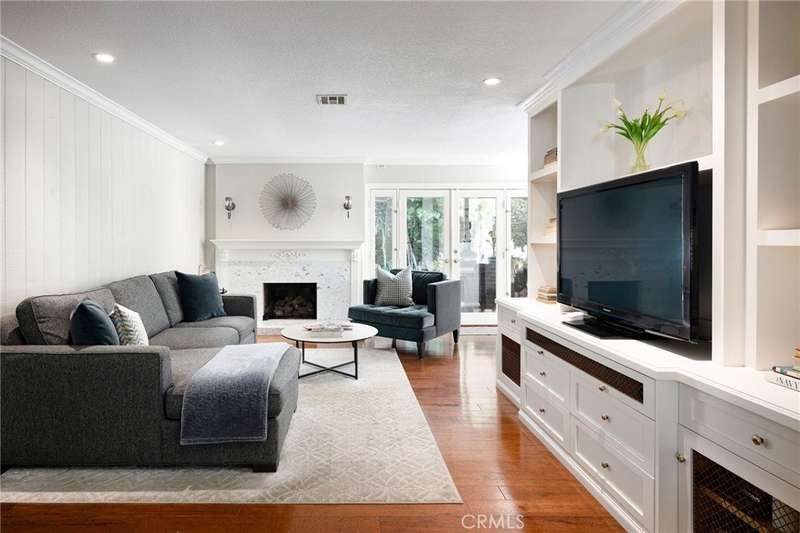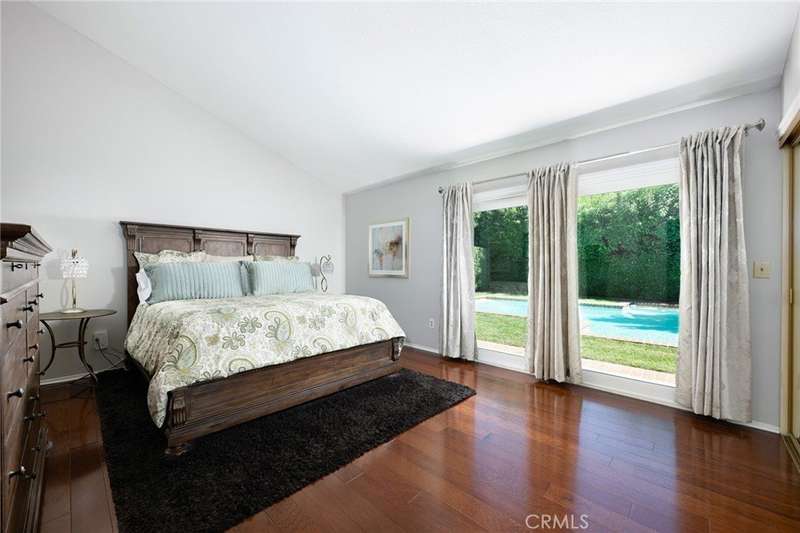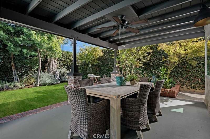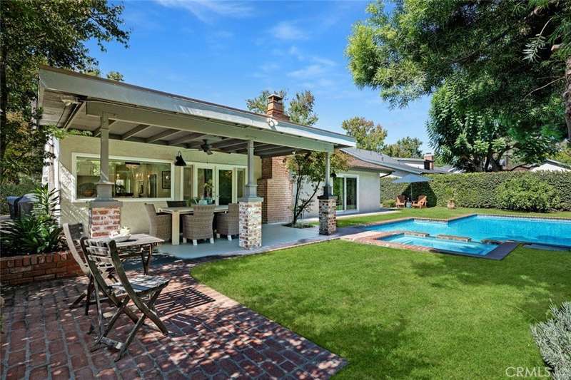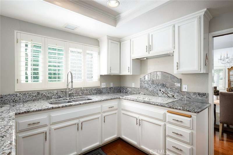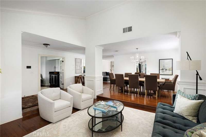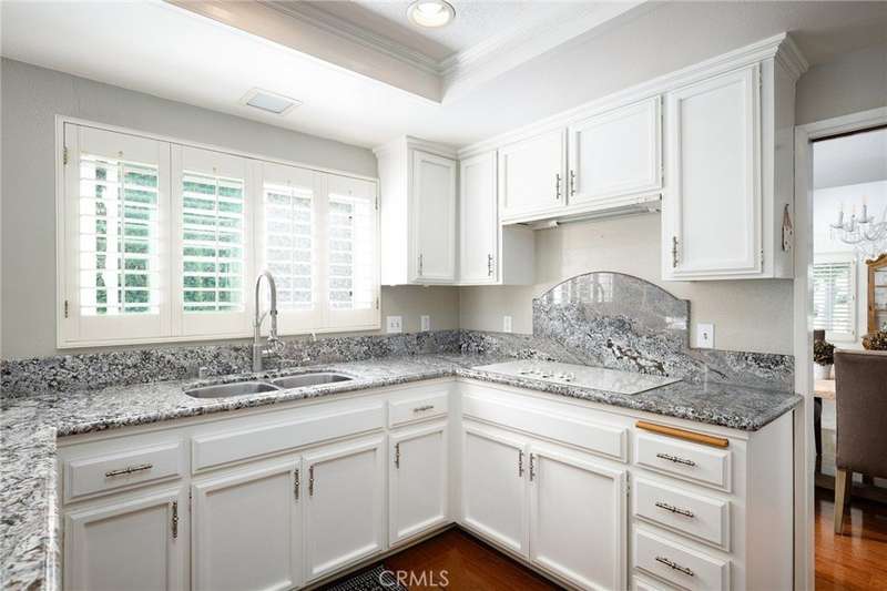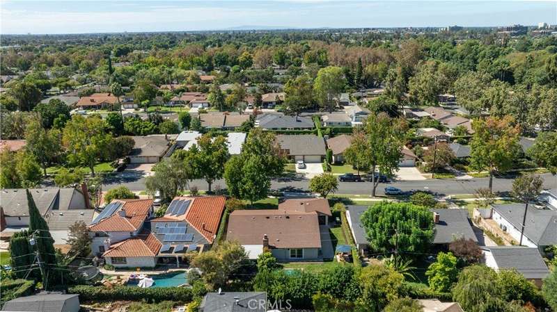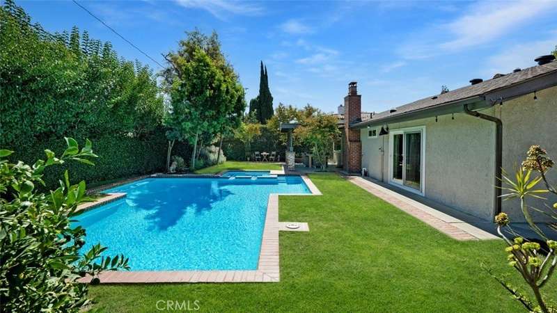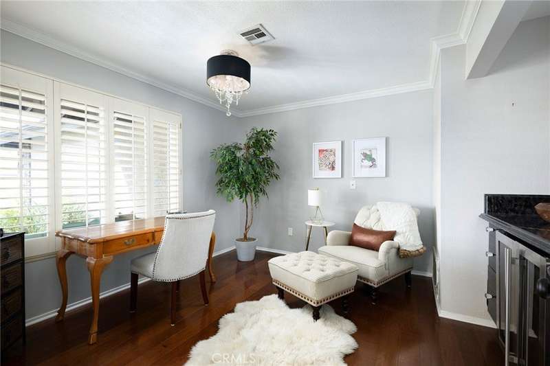 Beautifully upgraded inside and out, this stunning West Floral Park home combines modern living with timeless craftsmanship and elegant finishes. A manicured front yard and inviting porch welcome you to the double-door entry. Inside, the finished brick flooring and the Mannington dark walnut hardwood floors set the tone for the sophistication throughout. The spacious living room impresses with its cathedral ceiling with wide crown molding. The adjoining dining room, defined by a graceful ceiling change, wainscot panels and crystal chandelier, offers an intimate setting for special gatherings. Large windows and glass doors fill the home with natural light and showcase backyard and pool views from many rooms. The remodeled kitchen features crisp white cabinetry, stainless steel appliances, crown molding, and luxurious Coliseum granite counters with a casual eat-in bar. The breakfast nook, complete with its own chandelier, opens to the family room and freshly rebuilt covered patio, perfect for outdoor dining and poolside entertaining! The family room centers around a marble fireplace with carved wood mantle and a wall of custom built-in cabinetry, creating a warm and inviting space to gather. 4 bedrooms and 2 upgraded bathrooms, including a serene primary suite with cathedral ceiling, ample closet space, view of the sparkling pool, and private bath with dual sinks, stone counters, and a step-in shower. The front bedroom, currently used as an office, has a built-in with granite countertop. A wide hallway includes built-in cabinetry with granite counters and glass display doors for added storage and style. Quality upgrades include newer Anlin windows and glass doors, upgraded interior doors, a new tankless water heater, and plantation shutters. The oversized three-car garage offers abundant storage and a rare custom pass-through door to the backyard. Outdoors, the sparkling pool and spa are surrounded by brick accents, lush lawn, and vine-covered walls, offering both beauty and privacy. The expansive covered patio is ideal for relaxing or entertaining in true California style. Located in the highly desirable West Floral Park neighborhood, known for its friendly atmosphere, mid-century and ranch-style homes, and community events such as Open Garden Day and holiday celebrations. Centrally located near the 5, 22, and 57 freeways, only minutes to Orange County School of the Arts, Downtown Santa Ana, and Old Towne Orange—this exceptional home is not to be missed!