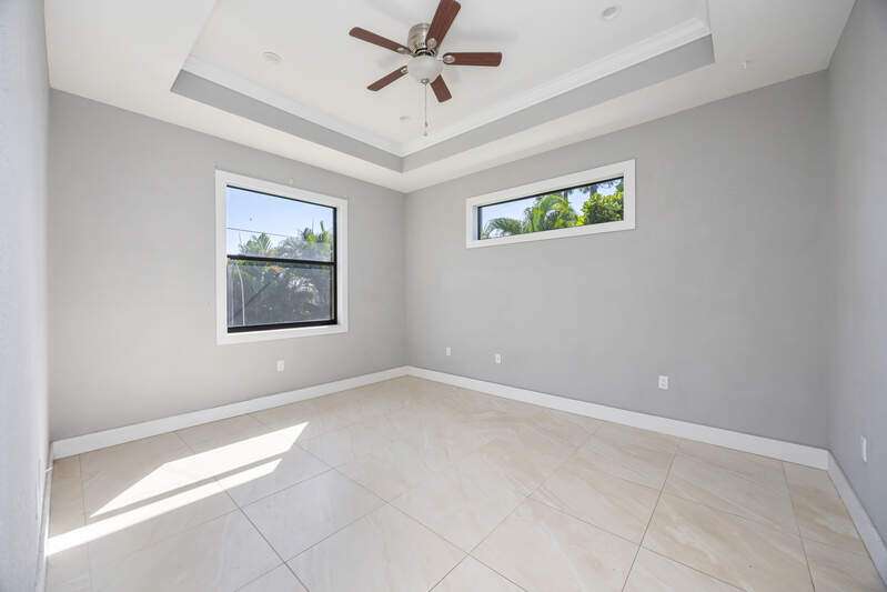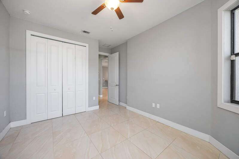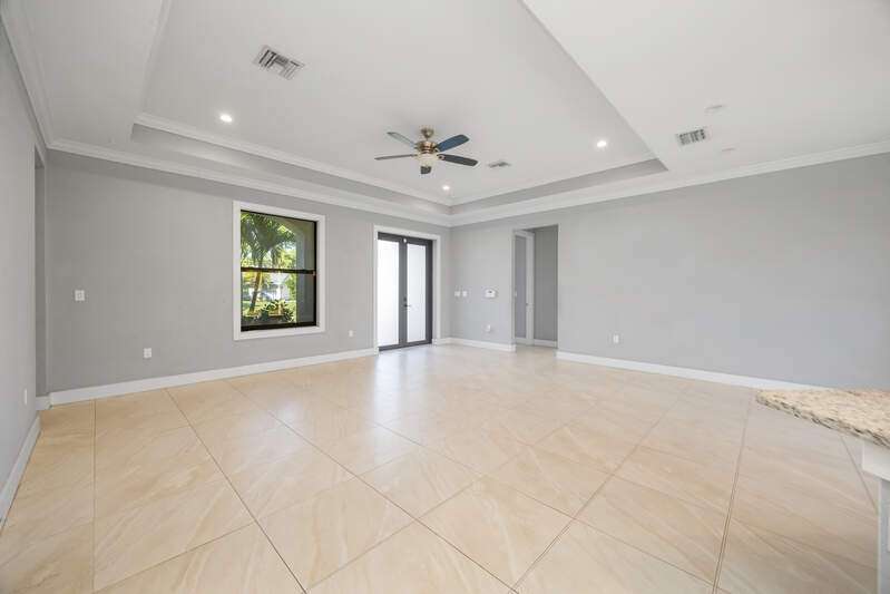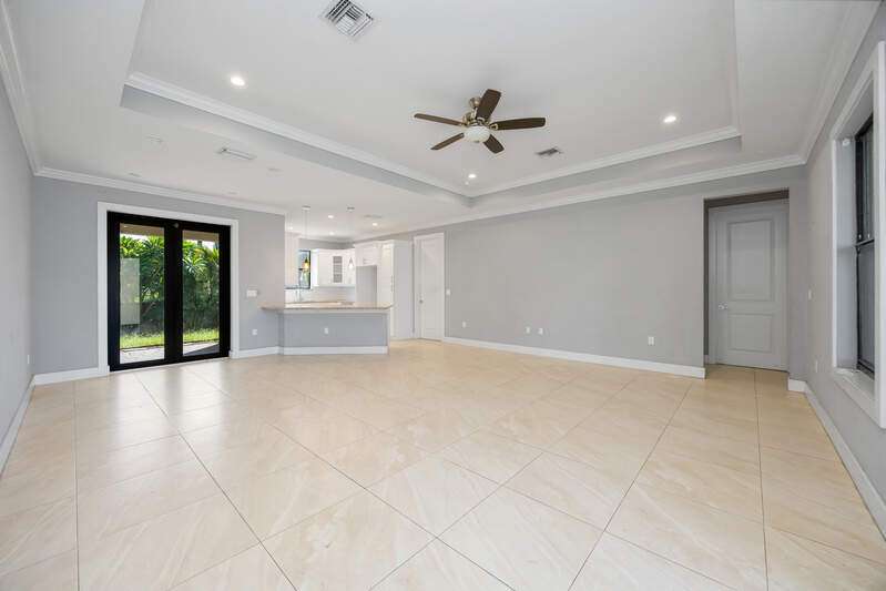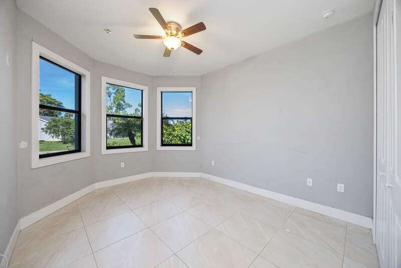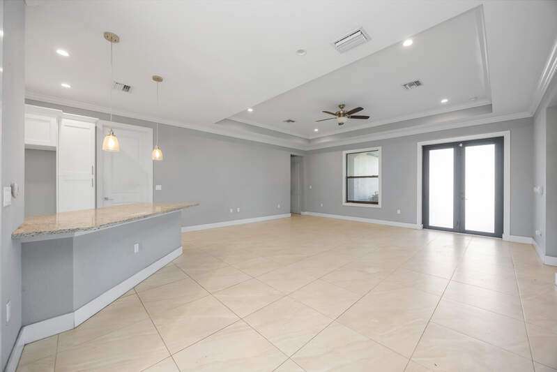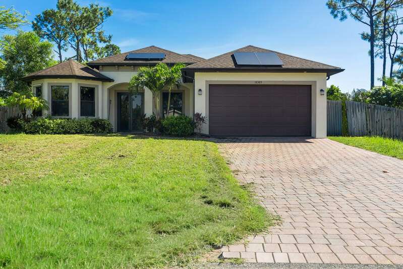 This beautifully maintained 3-bedroom, 2-bathroom single-family home, built in 2017, offers modern living with an open floor plan and thoughtful upgrades throughout. Featuring solid wood kitchen cabinets, granite countertops in the kitchen and bathrooms, and elegant tile flooring, this home blends style with functionality. The family room and master bedroom showcase tray ceilings for added charm, while recessed lighting and ceiling fans enhance comfort in every room. Solar panels provide energy efficiency, and a spacious 2-car garage adds convenience. Located just minutes from the airport, FGCU, shopping, and dining, this home offers both comfort and prime accessibility.