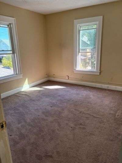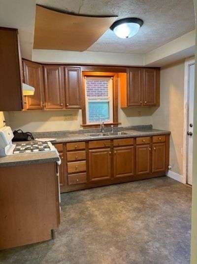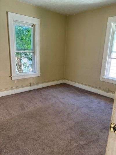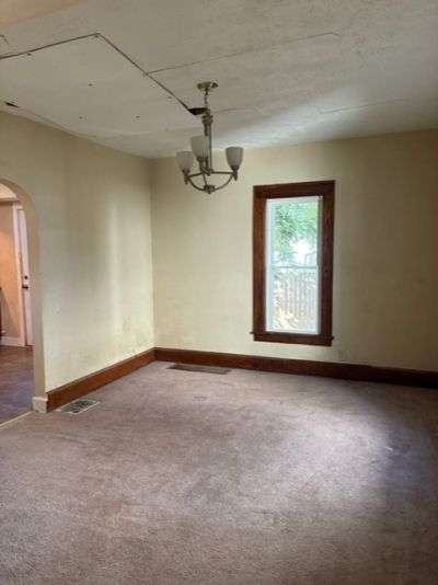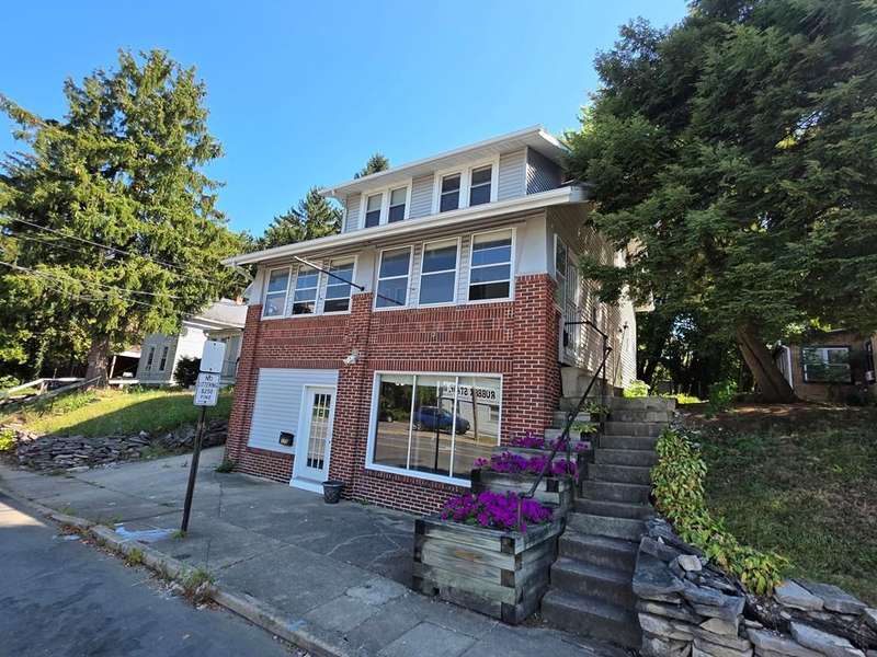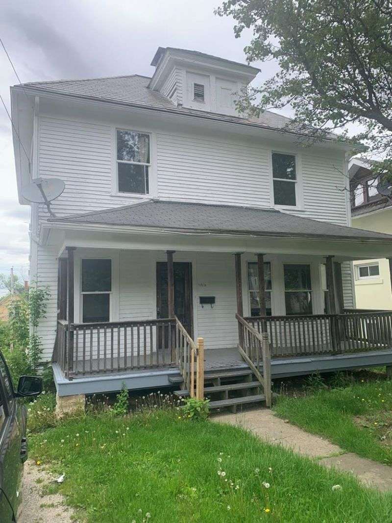 Great potential in this all brick, sturdy two story home near the hospital! Spacious living room with entryway and decorative fireplace, dining room, updated kitchen with gas stove, 3 bedrooms, and 1 bath. Roof, vinyl windows, kitchen cupboards and countertops, and gas furnace all replaced approximately 15 years ago. Newer steps lead to covered front porch and open deck in back leads to fenced backyard. Shared walkway with neighbor between both houses. Home is being sold "As Is". Listing agent is related to sellers.