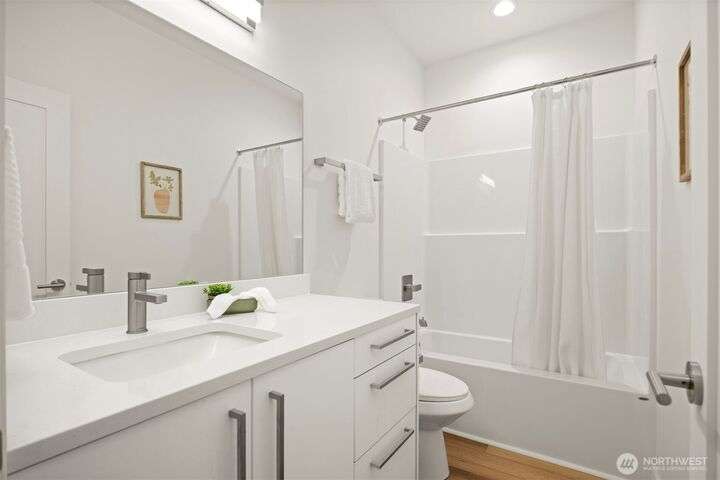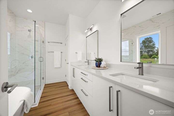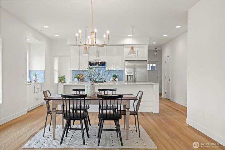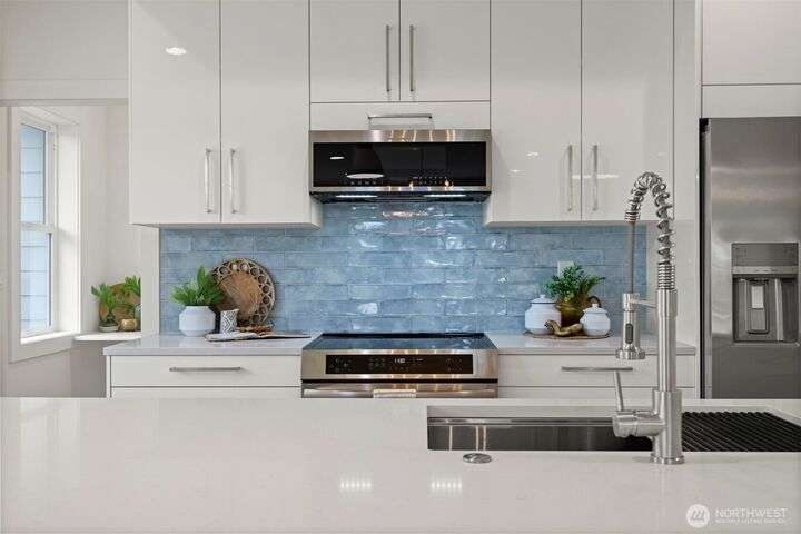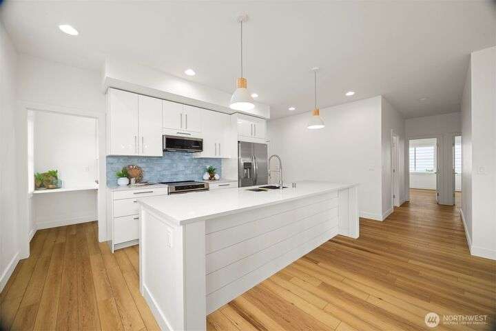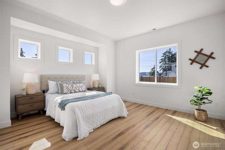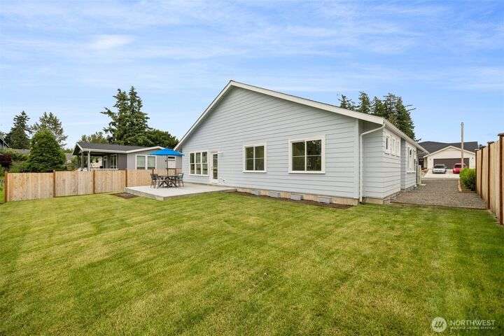 This newly constructed, single-level home is beautiful and located in a wonderful new development along the shores of Drayton Harbor, which features parks and walking trails throughout. The home is bright and airy, showcasing modern finishes and an excellent open floor plan. There is a butler's pantry adjacent to the kitchen, which opens to the living and dining areas. Near the front entry, there is an office, along with three bedrooms. The primary suite offers stunning saltwater views, and its bathroom features a sleek soaking tub, as well as a separate glass shower. The landscaped lot is level and fully fenced.
