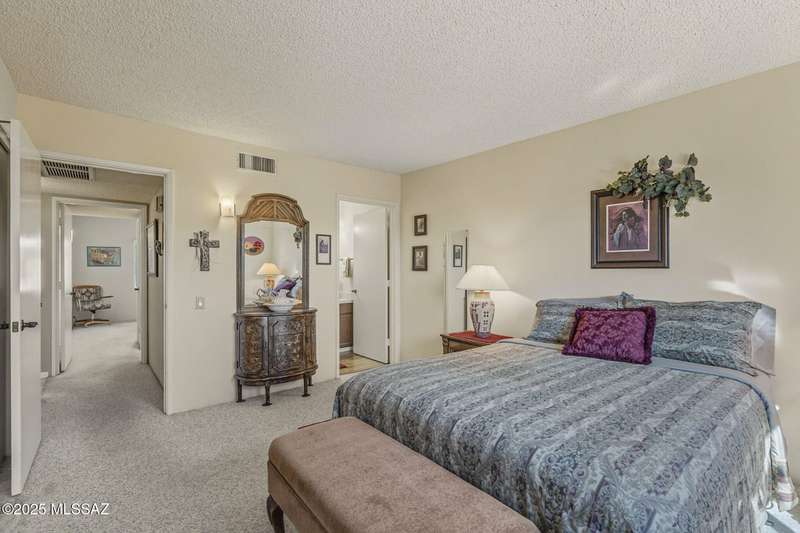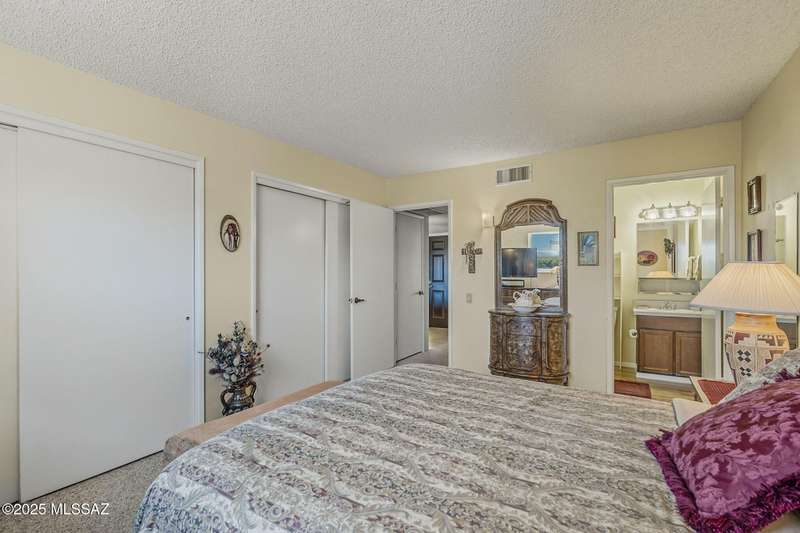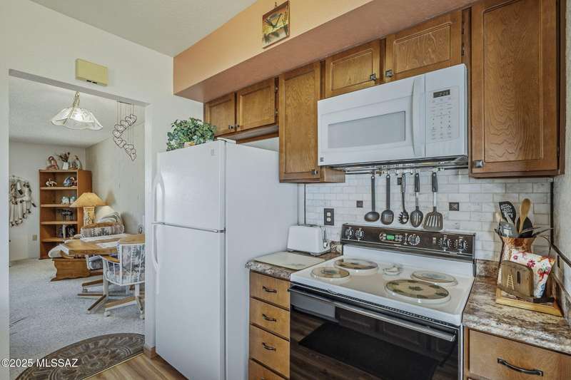 Charming 2 bedroom/2 bathroom townhome in the heart of Green Valley! This desirable end unit offers a carport with storage and extra common area space on the side, creating a feeling of openness and privacy. Step inside to the bright and airy living and dining area, perfect for relaxing or entertaining. The updated kitchen features a beautiful backsplash, ample cabinet space and an in unit washer/dryer. The spacious primary suite includes an en suite bathroom overlooking the serene back patio space. Enjoy beautifully landscaped plants and spectacular mountain views from your back patio. Ideally located near shopping, dining and GVR centers. This is the perfect retreat for seasonal visitors or full time living.