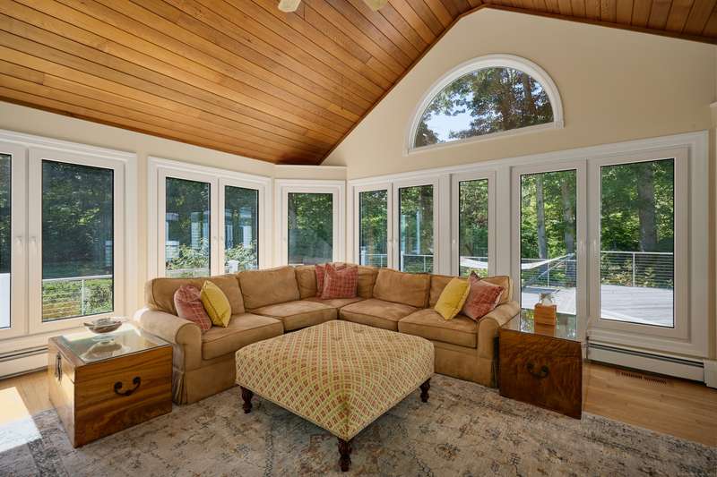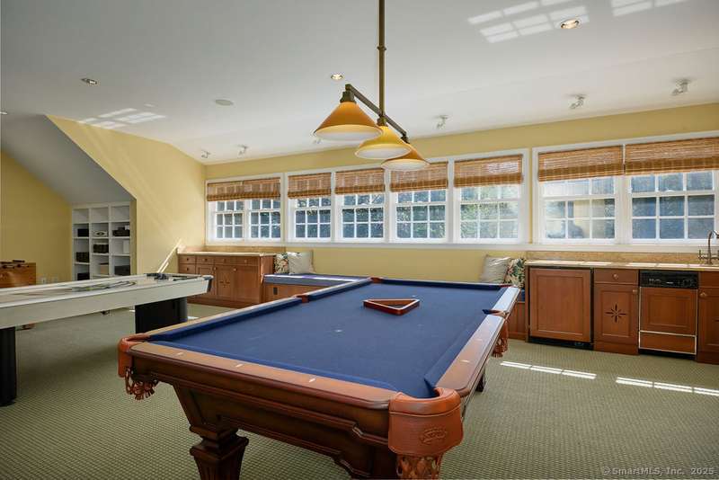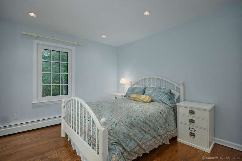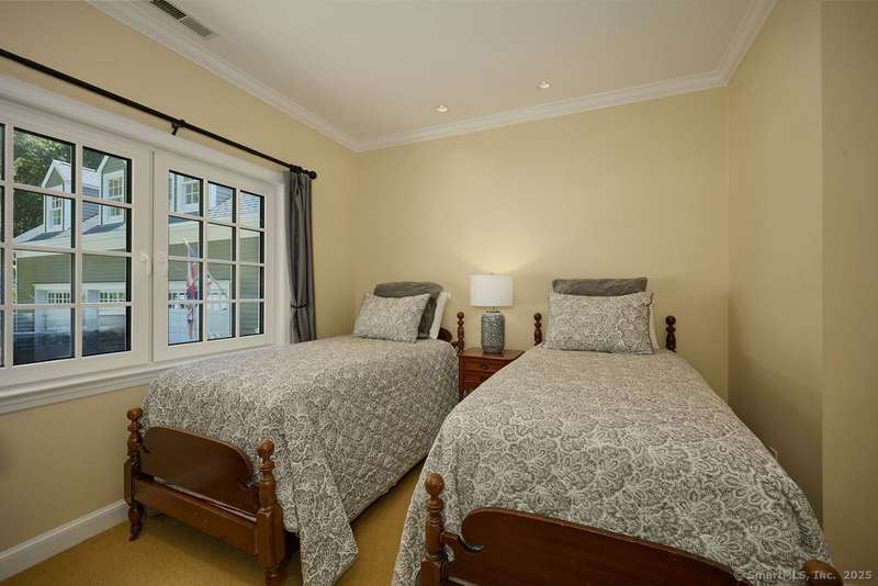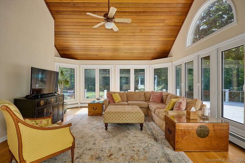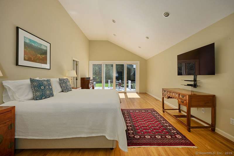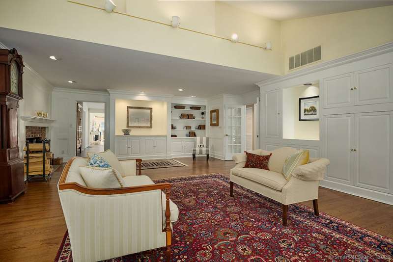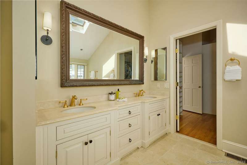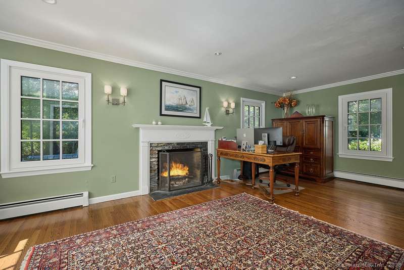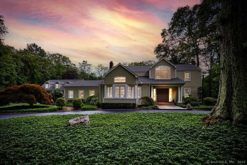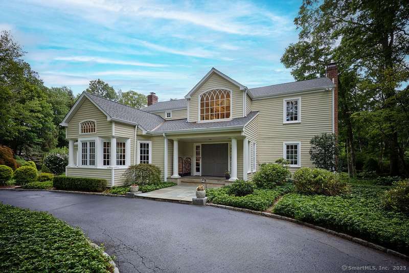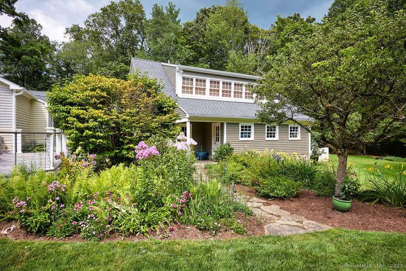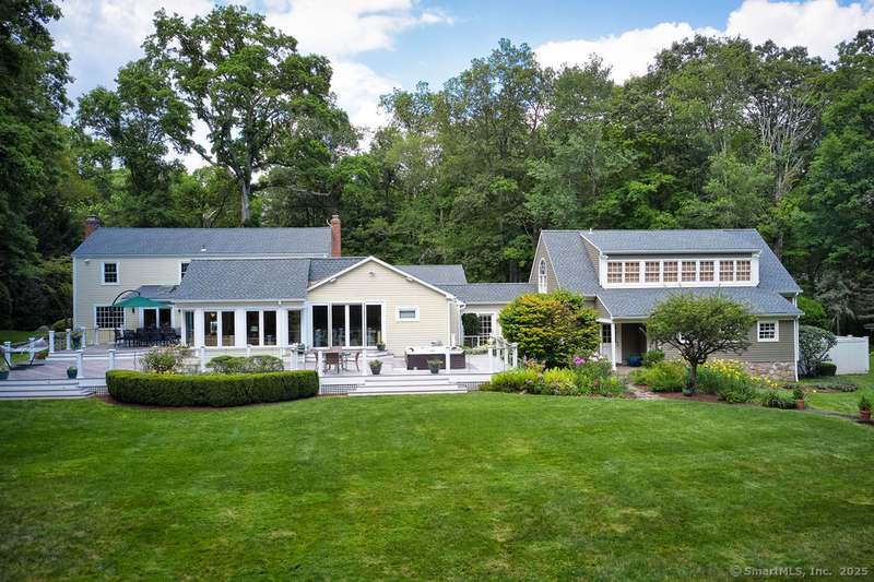 NEW LISTING!! Weston estate on prestigious Norfield Rd. Walk to Weston center, library & schools, while still enjoying TOTAL privacy. 2 acres of lush gardens & specimen plantings with irrigation, landscape lighting & deer fence surround this 6300 -+ sq ft, well maintained, charming, vintage colonial rambler with 6 bedrooms, 4 full & 2 half baths. Sun drenched with high ceilings and many skylights. Recent improvements include: New Roof, New high quality VEKA European Windows & Doors, New enormous multi-level Mahogany Decks with Steel Cable Railing, Fully Painted outside & much of inside, New whole house Reverse Osmosis Water Treatment. First floor: Dramatic two story Foyer. Spacious Living Room with fireplace, built-ins. Den with fireplace. Formal Dining Room with sliders to deck. Huge open plan kitchen with large island and dining area which flows into spacious family room with tongue and groove wood cathedral ceilings and walls of windows and sliders overlooking gardens. Main level pr