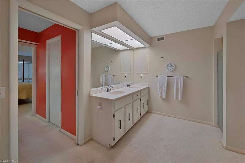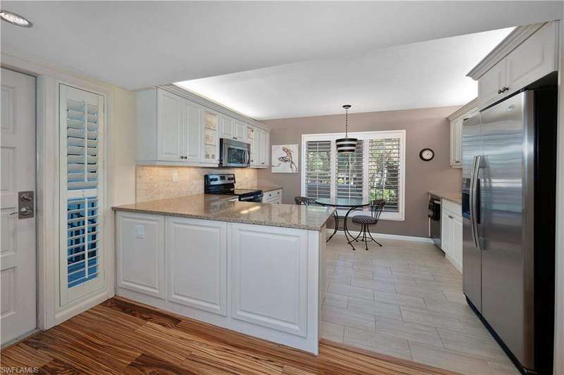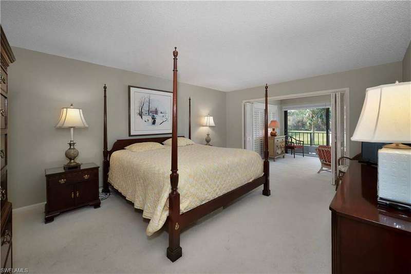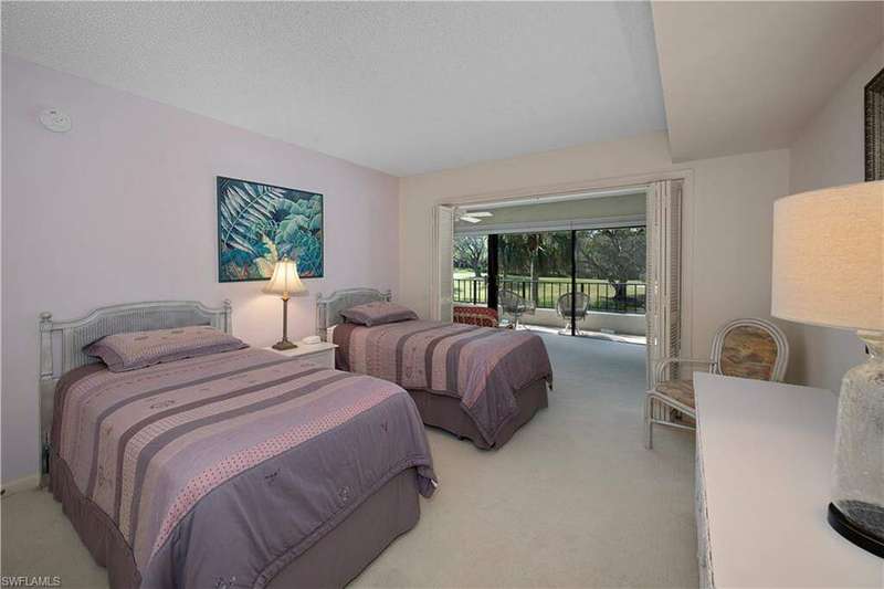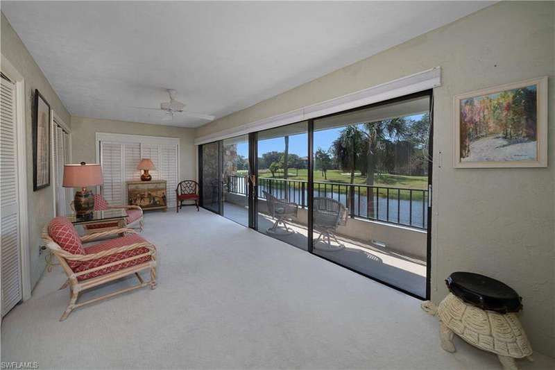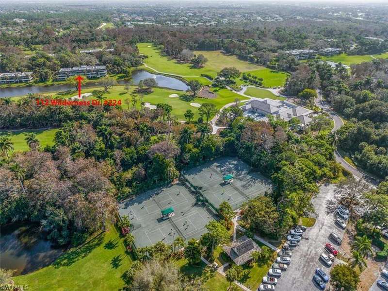 Motivated Seller, Bring Offers! Welcome to Wilderness Country Club, your paradise in the heart of Naples. Overlooking the picturesque 18th fairway, this 2-bedroom/2-bathroom unit is perfect for those seeking convenience and proximity to Wilderness' ultimate amenities. Experience the luxury of Wilderness Country Club, a sanctuary of elegance and exclusivity. Gain immediate golf membership with no waiting list and have access to unlimited golf on an 18-hole Arthur Hills course. This unique and spacious, over 1900 sf, open plan second-floor condominium is located in close proximity to the clubhouse, 1st tee, and saltwater pool. It features expansive front-to-back views, giving the unit beautiful natural light throughout the day. The updated kitchen is outfitted with custom white raised cabinetry, neutral-toned quartz countertops, stainless steel appliances, and plantation shutters. The primary suite has a full walk-in closet, dressing area with makeup bar/office space, and a full bathroom with double sink vanity, oversized soaking tub, and walk-in shower. The guest bedroom and full guest bathroom includes an oversized vanity and tub/shower combo. Both bedrooms access the den/lanai and patio overlooking a stunning pond teeming with wildlife and views across the 18th fairway and up to the new clubhouse. This condominium, in an elevator building, includes your own golf cart and a private golf cart garage located adjacent to your reserved covered parking space. This gated paradise is an Audubon Cooperative Sanctuary set within a 200-acre forest with stunning landscaping and mature trees overhanging roadways. Wilderness Country Club offers a spectacular state-of-the-art clubhouse, driving range and practice green, 5 saltwater pools, 4 Har Tru tennis courts, bocce courts, croquet, and a dog park. It is located minutes away from charming shopping and dining at 5th Avenue and Old Naples and a mile to white sand beaches. Purchase of a Wilderness Country Club membership is required and immediately available.