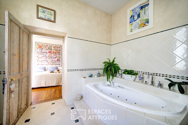 The whole opens onto a flowery garden and landscaped with passion, entirely enclosed by walls. A rare and precious green setting in the heart of the city.