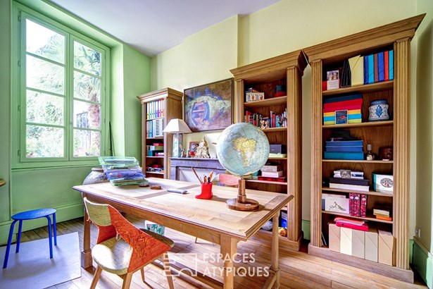 On either side of the entrance hall, the spaces are drawn. To the right, two separate rooms currently converted into offices offer great freedom of use: reading corner, games room, or artist's studio.