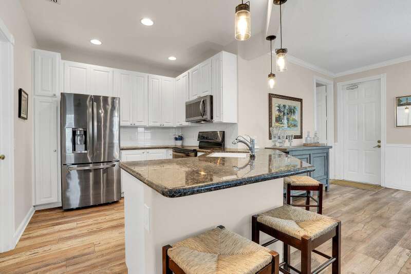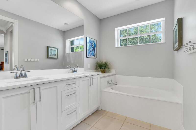 **Interior freshly painted ** Welcome to 211 Barbados Drive, Jupiter, FL - a rare corner-lot gem located in the highly sought-after community of the Island at Abacoa. This beautifully updated 3-bedroom, 2.5-bathroom pool home with a den offers the perfect blend of comfort, style, and South Florida living. Step inside to an open floor plan that flows effortlessly from the spacious great room to your own private backyard oasis. Downstairs, you'll find a dedicated office with French doors--perfect for working from home or a quiet retreat.The kitchen features white cabinetry, granite countertops, tile backsplash, stainless steel appliances, pendant lighting, and a custom-built wine bar with additional cabinetry for extra storage.