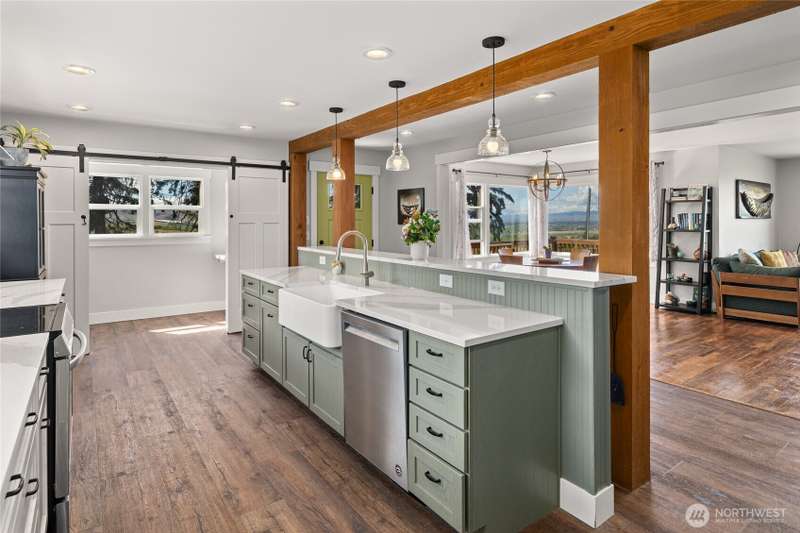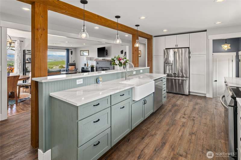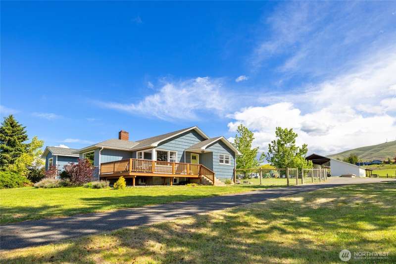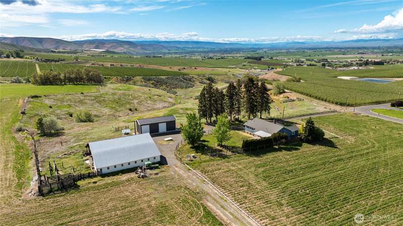 Welcome home to this 3,110 sqft updated farmhouse on 33.46 acres in Kittitas County offering 3bed/3bath, open living featuring barn doors, wood stove, built-ins & huge windows framing stunning valley & Stewart Mtn views. Kitchen features custom cabinets, quartz counters, farm sink & bar seating. The newly remodeled en suite primary bedroom includes a soaking tub & tiled shower. Basement ready for your vision w/office space, flex rooms & 3/4 bath. Mudroom adds function; covered back patio & front deck invites you to relax. Property includes 20 acres alfalfa & 10 acres pasture, w/ KRD irrigation. Historic barn is ready for horses, hay or cattle operation. 20’x48’ heated shop w/14’ doors. A rare blend of charm, comfort & wide open space.