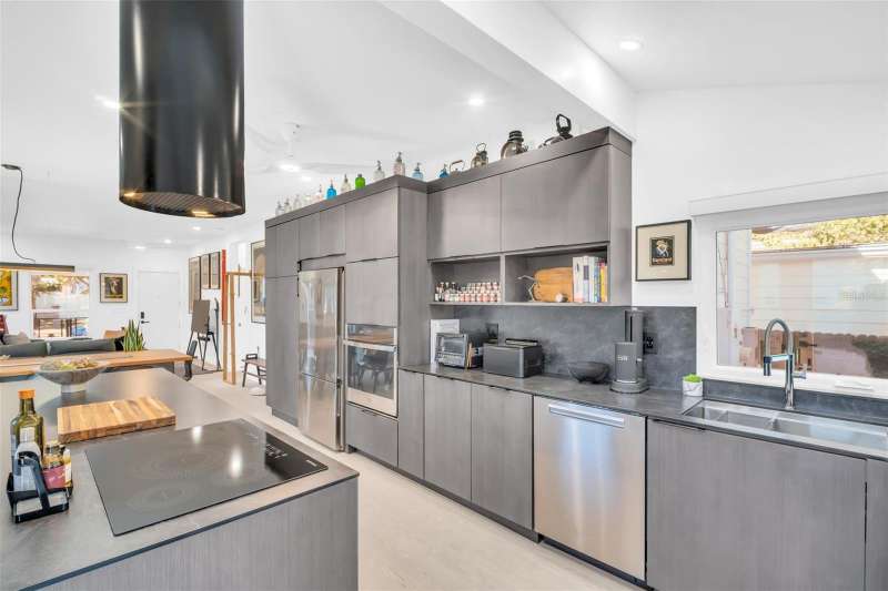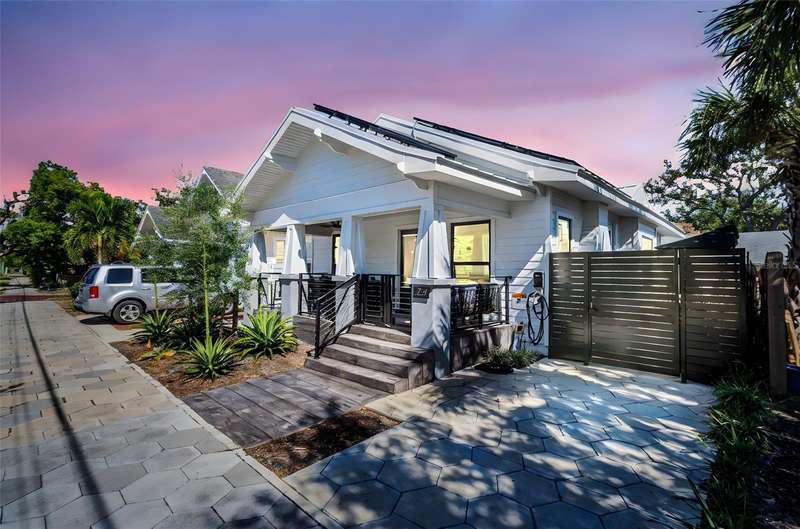 WELCOME TO 747 2ND STREET NORTH, where historical charm meets the innovation of today. This TOTALLY RENOVATED AND MODERNIZED residence blends timeless architecture with forward-thinking premium upgrades, delivering both curb appeal and peace of mind. From the moment you arrive, the homes welcoming front patio with custom railings and with stamped concrete sets the stage for perfection. Durable Hardie board siding, crisp paint, and durable metal roof showcase its renewed presence while preserving historic character. Step inside to find interiors wrapped in cork wood flooring, offering the elegance of hardwood with the added benefits of comfort, sound absorption, and sustainability. Designed for efficiency, the home features fully paid-for 7KW solar panels paired with a whole-house battery backup, keeping your power bill at zero while ensuring uninterrupted comfort. Two high-performance mini-split units and newly installed windows further enhance energy savings and year-round climate control. The kitchen is a modern showpiece with Fisher & Paykel and Miele appliances, new cabinetry, sleek finishes, and abundant storage, ideal for both everyday living and entertaining. Thoughtful upgrades like a UV water purification system + carbon & salt filter softener and tankless water heater elevate the experience even more. The primary bathroom has been redesigned as a calming retreat, offering spa-like finishes and a serene atmosphere for unwinding at the end of the day. Beyond the visible updates, the home also boasts all new electric/fitted with surge protection and replumbed with new sewer line along with important structural improvements including new foundation support footers, insulation upgrade: R-38 (attic) & R-15(walls) ensuring long-term stability. Outdoors, a freshly fenced yard with custom designed metal fencing creates a private haven for pets, gatherings, or simply soaking in the Florida sunshine. Electric vehicle owners will appreciate the dedicated EV charging setup right on the driveway. Situated just blocks from downtown St. Petersburg, this home places you within walking distance of coffee shops, boutiques, parks, and the City's vibrant waterfront. It's a rare opportunity to enjoy historic character, cutting-edge efficiency, and an unbeatable location all in one.