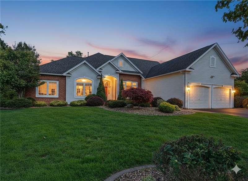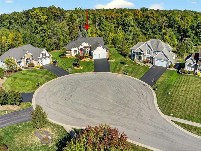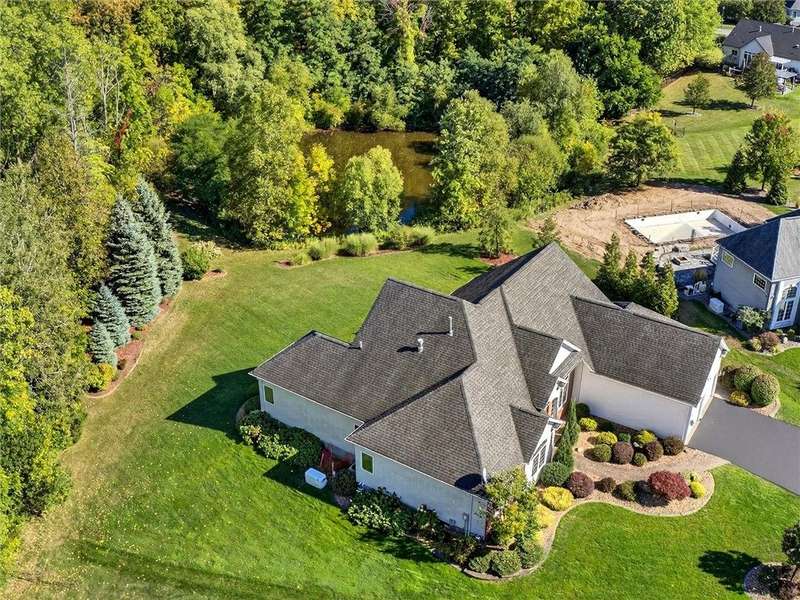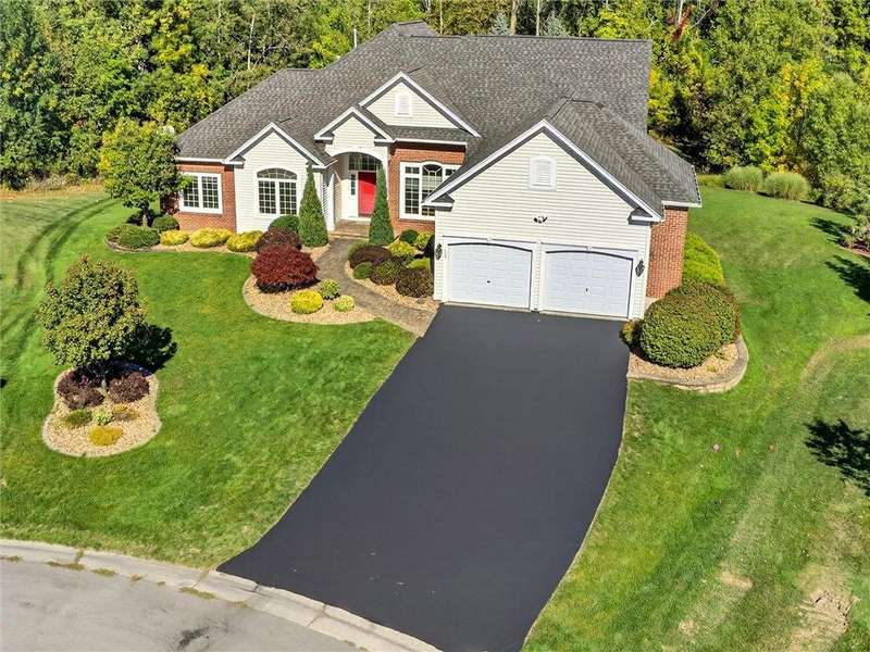 Great Home, Custom Built Ranch in 2005 on Cul-de-Sac backs to Private Lot, Mature Trees, Pines, Landscaping & Pond - Very Pretty, Open Floor Plan 2656 SqFt, 3 BDRM, 3.5 Bath Plus Office off Foyer with Closet - Two Story Foyer Entrance, Marble Floor, Open to Great Room (20x24) Hardwood Floors through Dining, Kitchen and Office, Soaring Cathedral Ceilings, Recessed Lighting, Gas FPLC, Built in Cabinets & Shelves, Big Picture Window Overlooks Vinyl Deck & Railings, Backyard is Picturesque Setting - Front Dining Rm, Tray Ceiling, Recessed Lights & Crown Moldings, Big 33' Kitchen & Eat-in Area, Cathedral Ceilings, Recessed Lights, 36" Oak Cabinets & Crown Molding, Black Quartz Counters, Island, Desk Work Area & Wall Cabinets, Walk-in Pantry, Built in Double Oven & All Appliances included W/D too-Big Eat in Area, Recessed Lighting, Angled Bay with French Doors to Deck, Additional Back Transom Window & Extra Large Great Room Windows Really Lets the Sun Shine! 1st Floor Laundry Room & Powder Room with Tile Floors Near Garage Entrance - Private Primary BD in Back, Tray Ceiling, Recessed Lights, Sliding Glass Door to Deck, 2 Walk in Closets, En Suite Bath, Tile Floor, 2 Separate Sinks, Corner Jacuzzi Tub, Shower & Private Toilet Room with Linen Closet, 2 BD off Front Hallway & Full Bath with Tile Floor & Tub/Shower - Big Full Unfinished Tall 12 Course Bsmt, Egress Window, Painted Floor, Furnace/Central Air 2005, Water Heather 2019, Roof 2005, Whole House Generac Back-up Generator, Full Bath, Tile Floor, Tall Vanity & Shower - Underground Sprinklers too! Brick and Vinyl Exterior, 2 Car Garage with Side Bumpout Storage Space, Two Story Covered Entrance, Stone Paver Walkway & Landing, Nicely Landscaped. Delayed Negotiations Until October 7th, Tuesday @ 3:00 PM.