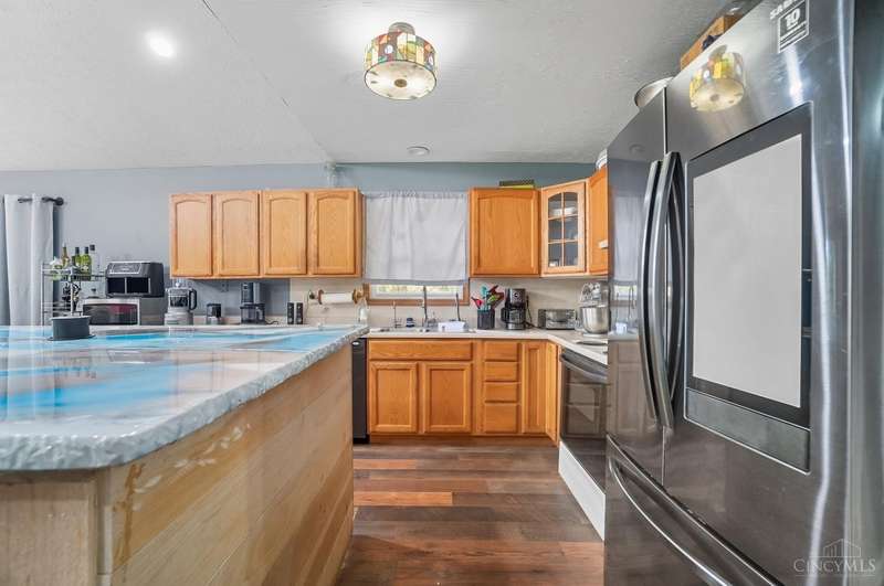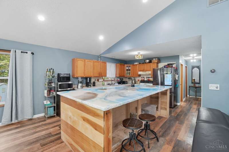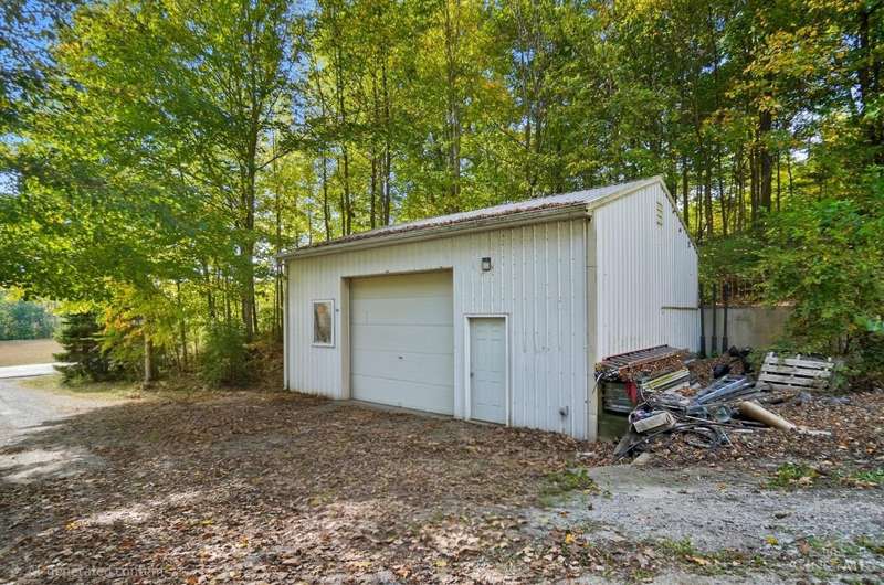 You must see this 3 Bed 2 Bath Raised Ranch, Nestled on a 3 Acre Serene Wooded Lot. The Views from the Great Room overlook the Property's Custom Built 5 Connected Ponds w a Fountain Pump System. There are multiple Fruit Trees throughout the Property! Upstairs you will find Breathtaking Views from the Main Living Area, w Vaulted Ceilings that open up to the Dining & Kitchen w a Custom Oversized Island (11 X 5)! The Master Bedroom has an On suite Bathroom w a Private Deck to Enjoy the Wooded View! Downstairs the 1st Floor has so much potential, including 1 Bedroom & Space to Make into a Second Living Space or Bonus Rec Room (10 Foot Ceilings!) There is a 2 Car Attached Garage as well as a 30x24 Detached Garage/Pole Barn (with electric and heat!). Extras: Septic, Well Water (Reverse Osmosis Filtration System & Water Softener & New Pressure Tank), Instant Hot Water Tank, Propane Heat (500 Gallon Buried Tank), Electric Stove & Dryer.