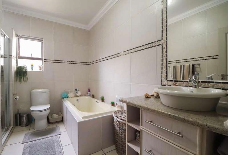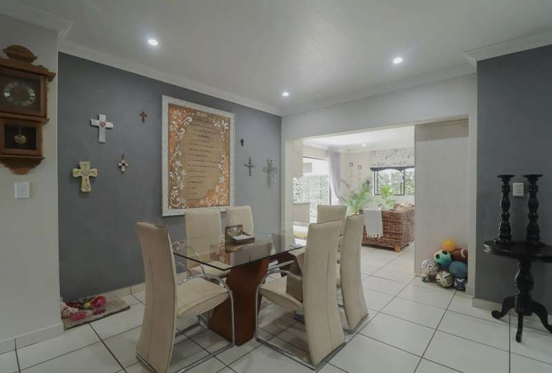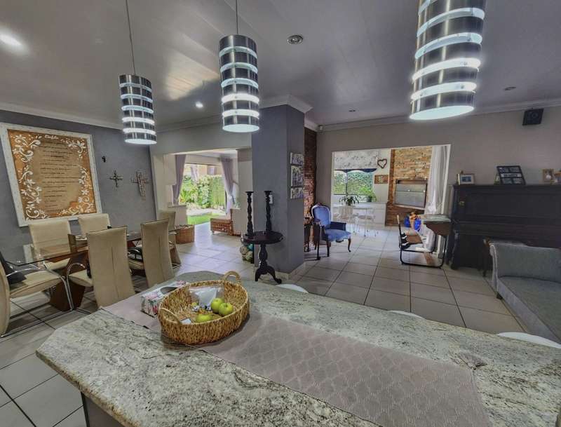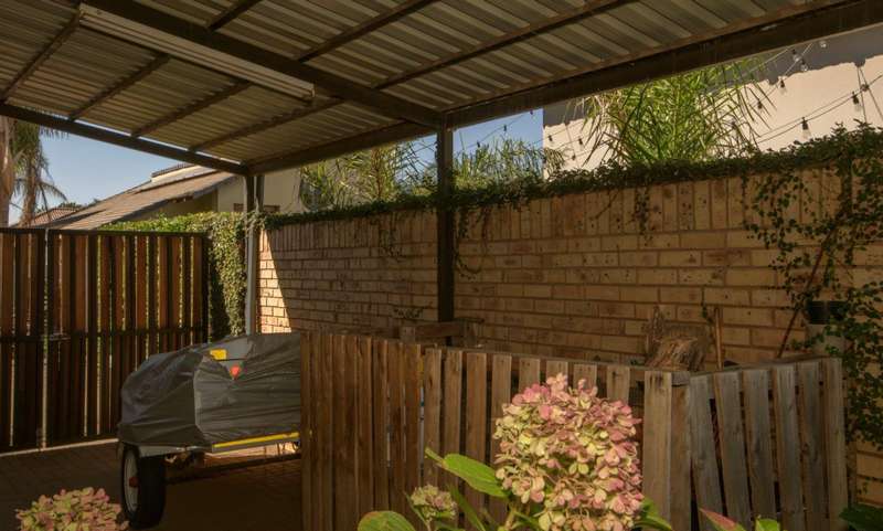 Modern, minimalist unit, situated in the exclusive Bordeaux estate, in the heart of Wilkoppies. An open floor plan, living space opens in front of you as you enter through the entryway. Neatly tiled, with dedicated living areas. The entertainment area opens out into the garden and has a built-in braai, allowing a family braai, all year round. Kitchen is an absolute eye catcher, dark wooden cabinetry, granite tops, low hanging pendant lights over the breakfast counter. Scullery/laundry is tucked around the corner, out of sight. Bedrooms are a true escape, looking out onto the well-established private garden. And then there are the two bathrooms if you ever needed to regenerate after a long day. Located among the lush green scenery of the garden, sits a sparkling blue pool, just the way to escape the warm summer days. At the side of the double garage, is a Steel carport, for those all-important grownup toys. Neatly paved underneath with lockable gate at the front. Additional benefits of the unit include, 5kWh inverter system, computerized irrigation system and water filtration system. Complex offers 24 hour security and green open areas.