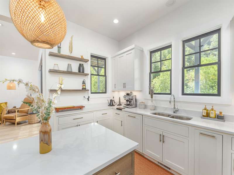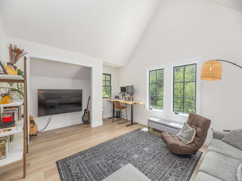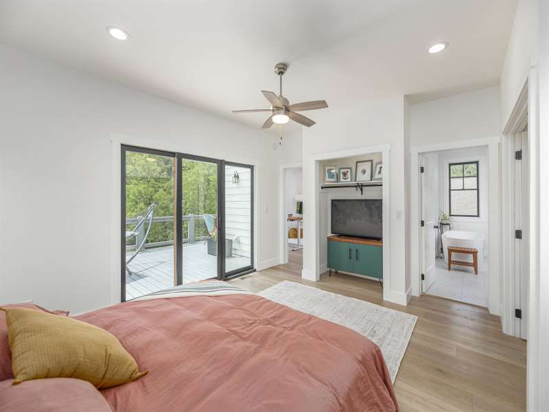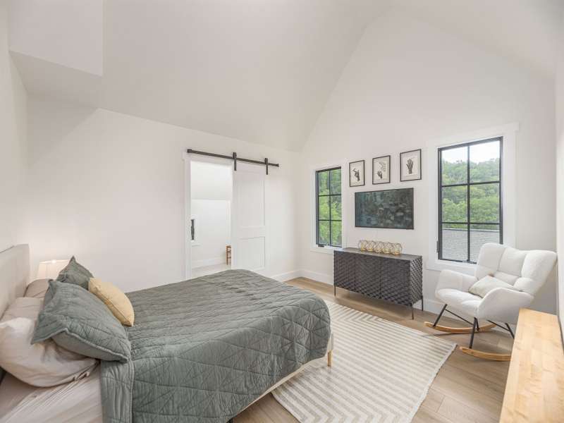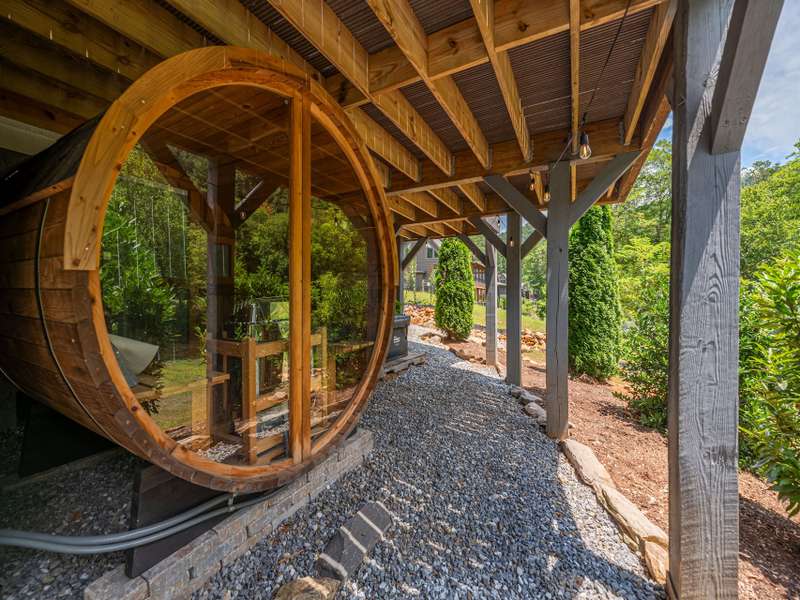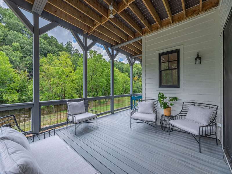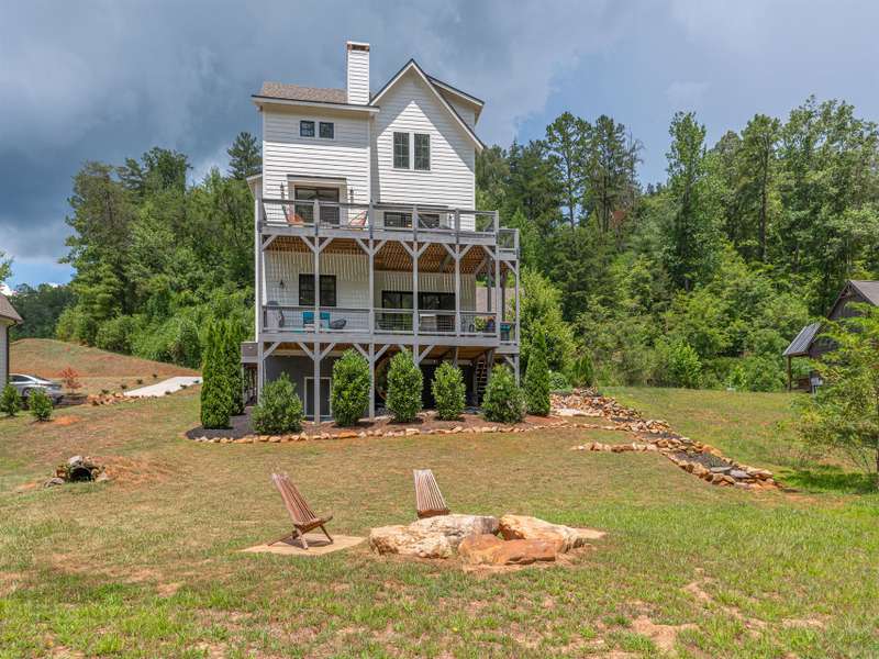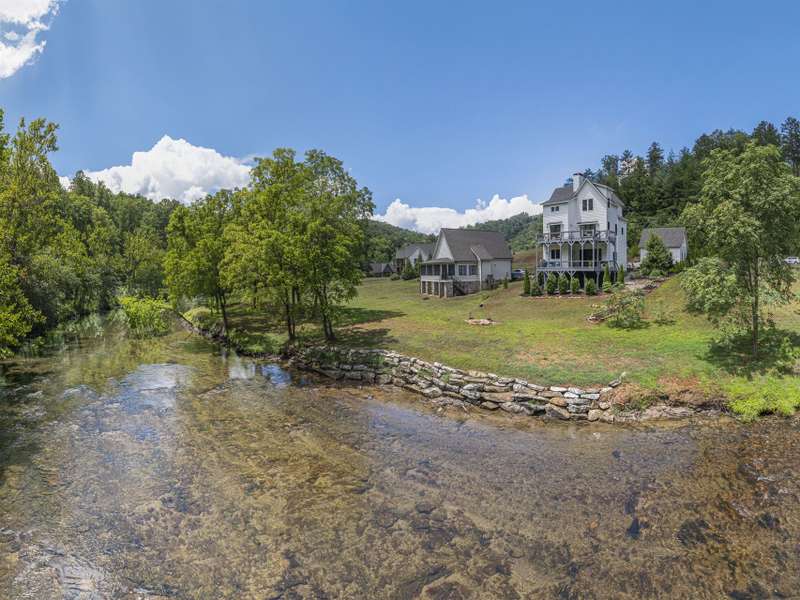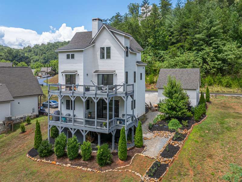 This luxurious modern farmhouse is perfectly situated above the tranquil Tuckasegee River, a fisherman's dream stocked with trout and perfect for floating or kayaking directly from your backyard. The gently sloping, oversized lot offers one of the most desirable settings in the neighborhood, with a large grassy backyard, no flood damage during Hurricane Helene, and plenty of parking for family and guests. Inside, the home features a spacious open floor plan with beautiful river views from nearly every window. The main level includes a large living room that flows into an elegant kitchen and dining area with a half bath. From here, step onto one of two expansive Trex decks, ideal for lounging and entertaining while overlooking the river. The upper level serves as a true retreat, with a primary bedroom that opens into a spacious office with a sleek wet bar, a private Trex deck, and a spa-like bathroom with a soaking tub and tiled shower. The third floor includes two generous guest bedrooms, each with its own private full bathroom. A Redwood Outdoors 6-person barrel sauna, featuring a powerful 8kW Harvia WiFi-controlled heater and a full glass wall that looks out over the water, creating a private wellness experience. The home also offers a large covered front porch, an oversized two-car garage with an unfinished upstairs, and tasteful stone landscaping that ties everything beautifully into the upscale neighborhood. Built with 2x6 construction, the home includes industrial-grade LVP flooring throughout, with durable carpet on the stairs. The design blends premium craftsman style with modern farmhouse touches. It comes fully furnished (excluding a few select pieces) and includes high-end appliances such as a washer, dryer, and refrigerator. The kitchen features premium Miele appliances, including the oven, microwave, and dishwasher. Enjoy the benefits of natural gas, including a gas stove and a grill hookup. The property is also connected to high-speed fiber internet, making it ideal for remote work or streaming. Located just seconds from the Western Carolina University campus, this home offers both convenience and privacy. The community allows select short-term rentals, and this property is one of the few that qualifies. Other similar rentals in the neighborhood have a proven track record of profitability, while the remaining homes are owner-occupied family residences. This is a rare opportunity to own a premium riverfront home with unmatched views, luxurious features, and income potential!