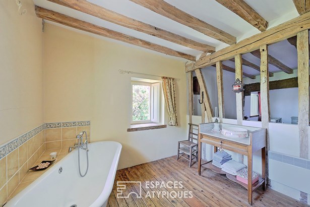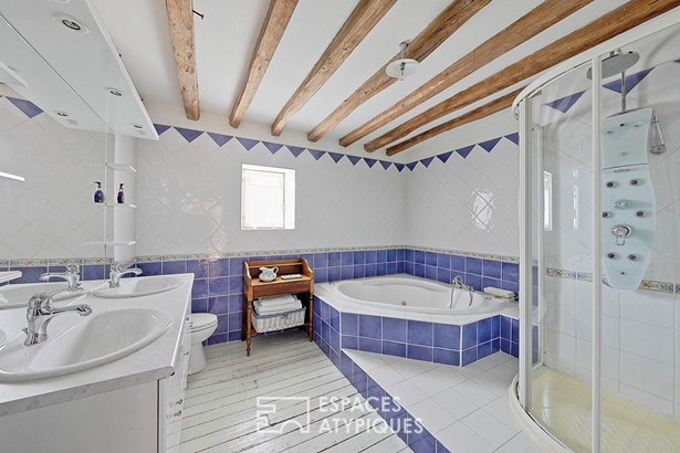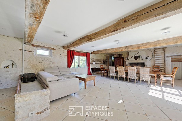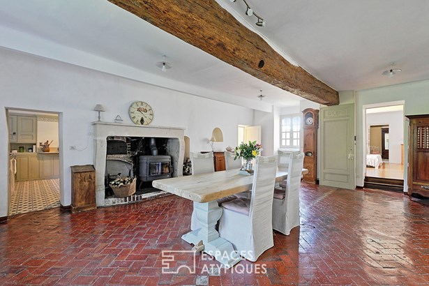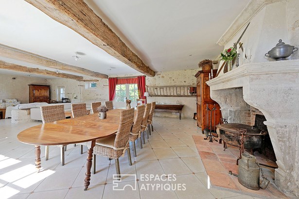 Ancien corps de ferme avec colombier, piscine et grand parc paysager